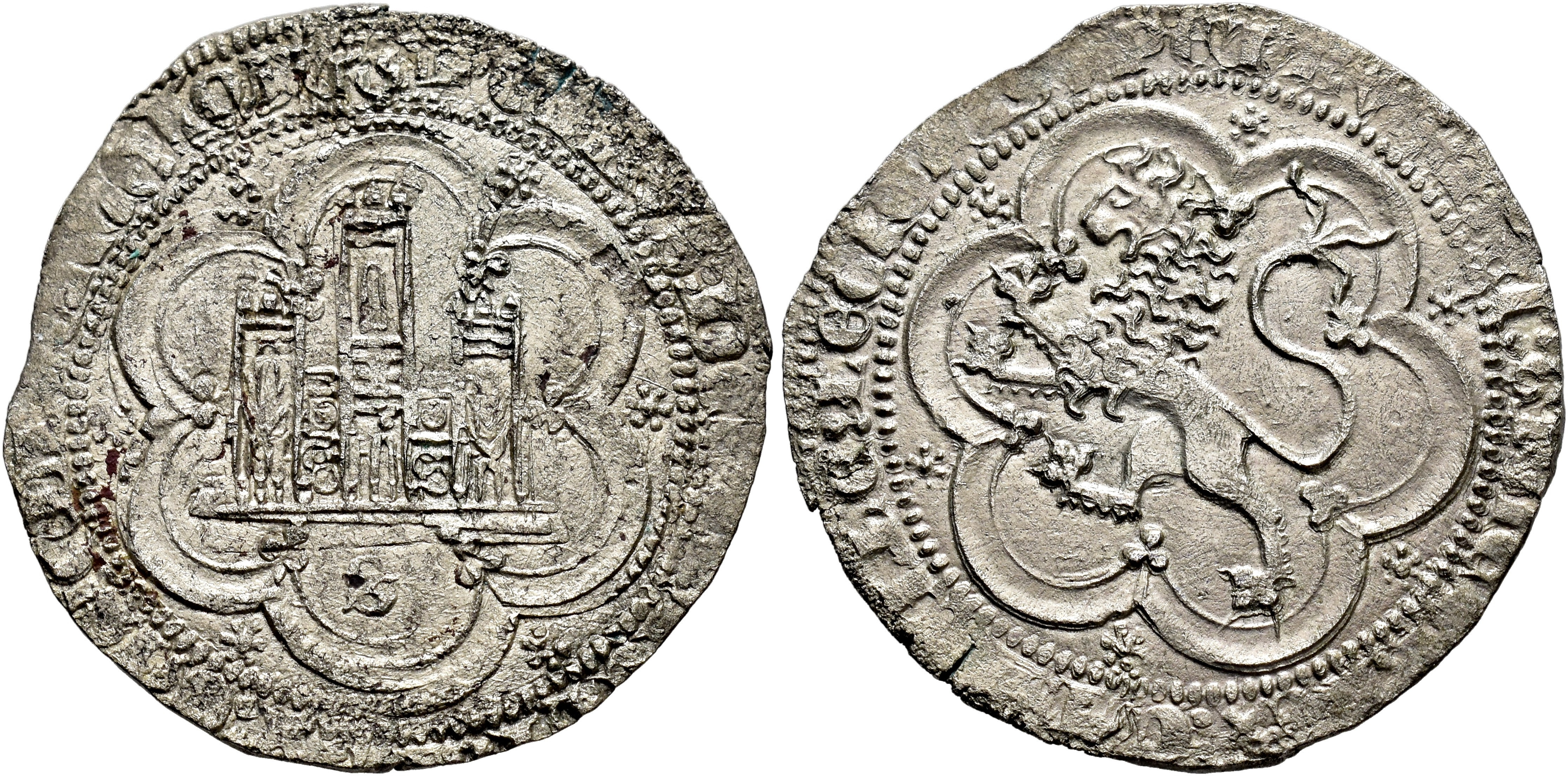REINOS DE CASTILLA Y LEÓN. PEDRO I (1350-1366). Blanca de 4 maravedís. Sevilla. VE 4,9 g. 30,7 mm. III-386; BMM-536. EBC/EBC-.