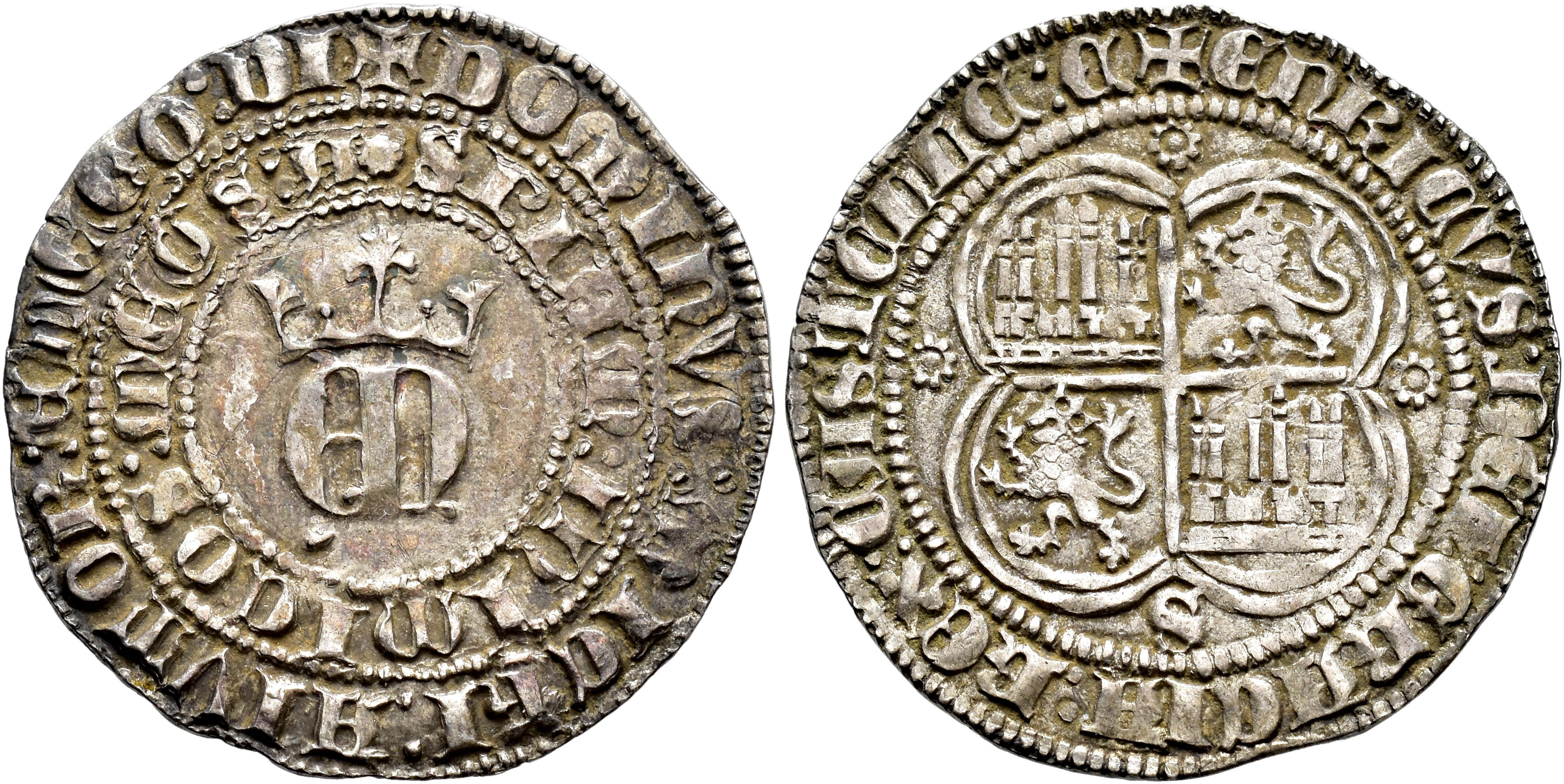 REINOS DE CASTILLA Y LEÓN. ENRIQUE II (1367-1379). Real. Sevilla. Ley. separadas por dos puntos. AR 3,49 g. 27,7 mm. III-406; BMM-553.2. MBC+.