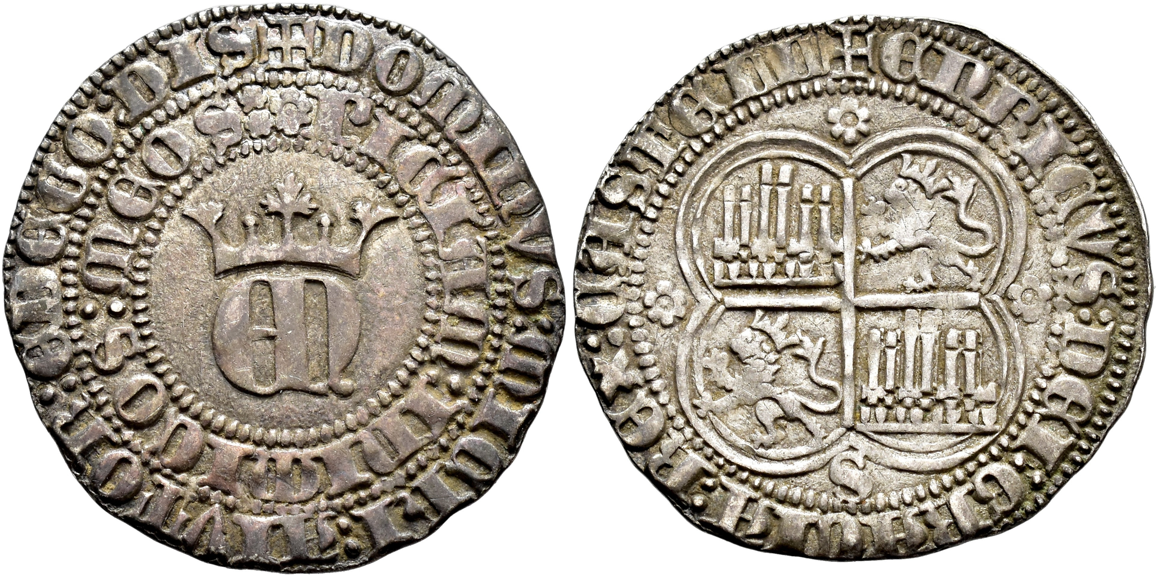 REINOS DE CASTILLA Y LEÓN. ENRIQUE II (1367-1379). Real. Sevilla. ENRICUS DEI GRACIA REX CASTELL. AR 3,48 g. 26,6 mm. III-406; BMM-553.2. MBC.