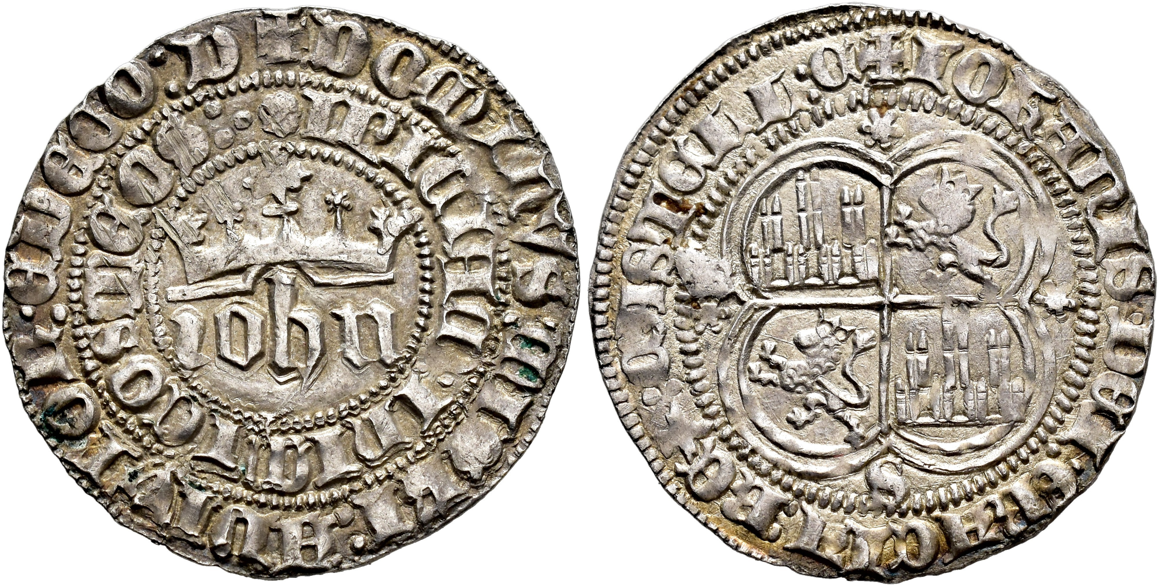 REINOS DE CASTILLA Y LEÓN. JUAN I (1379-1390). Real. Sevilla. AR 3,49 g. 27,4 mm. III-539.1; BMM-799 (como Juan II). MBC+/EBC-.