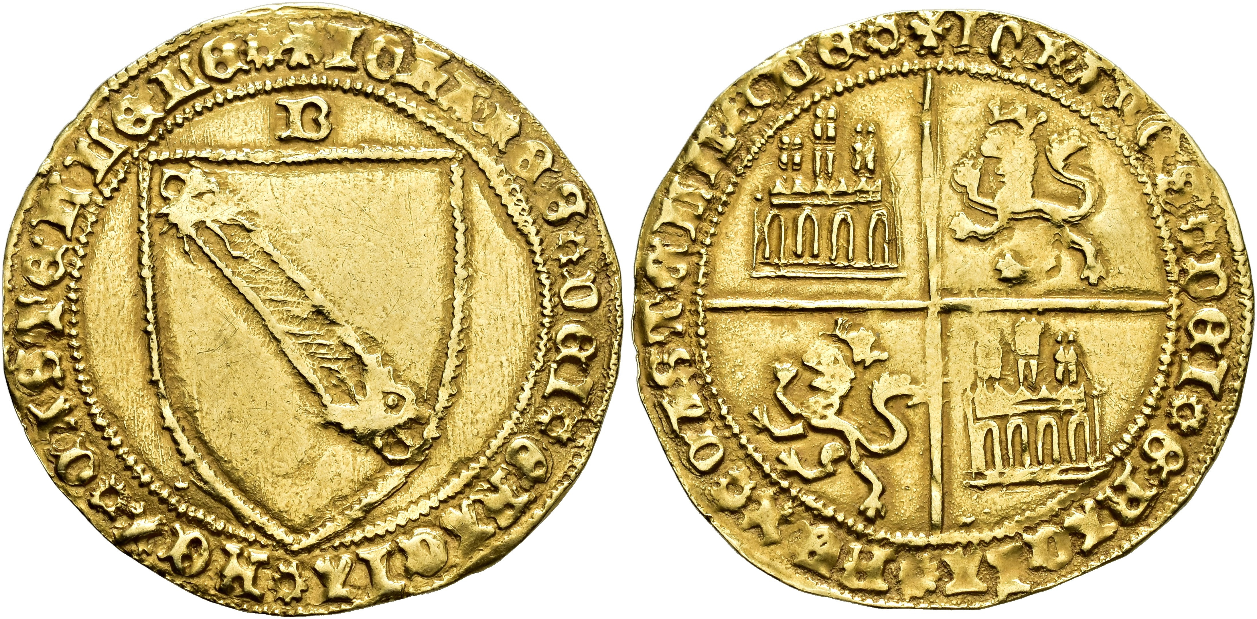 REINOS DE CASTILLA Y LEÓN. JUAN II (1406-1454). Dobla de la banda. Burgos. Florones separando las leyendas. AU 4,44 g. 30,2 mm. III-615; BMM-787. Ligeramente abrillantada. MBC. Escasa.