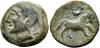 HISPANIA ANTIGUA. CASTULO. Semis. A/ Cabeza diademada izq. R/ Toro a der., encima creciente. AE 5,52 g. 18,9 mm. ACIP-2171, var. por toro a der.; CC-2717, mismo ejemplar. Pátina verde. BC+/BC. Rarísima.