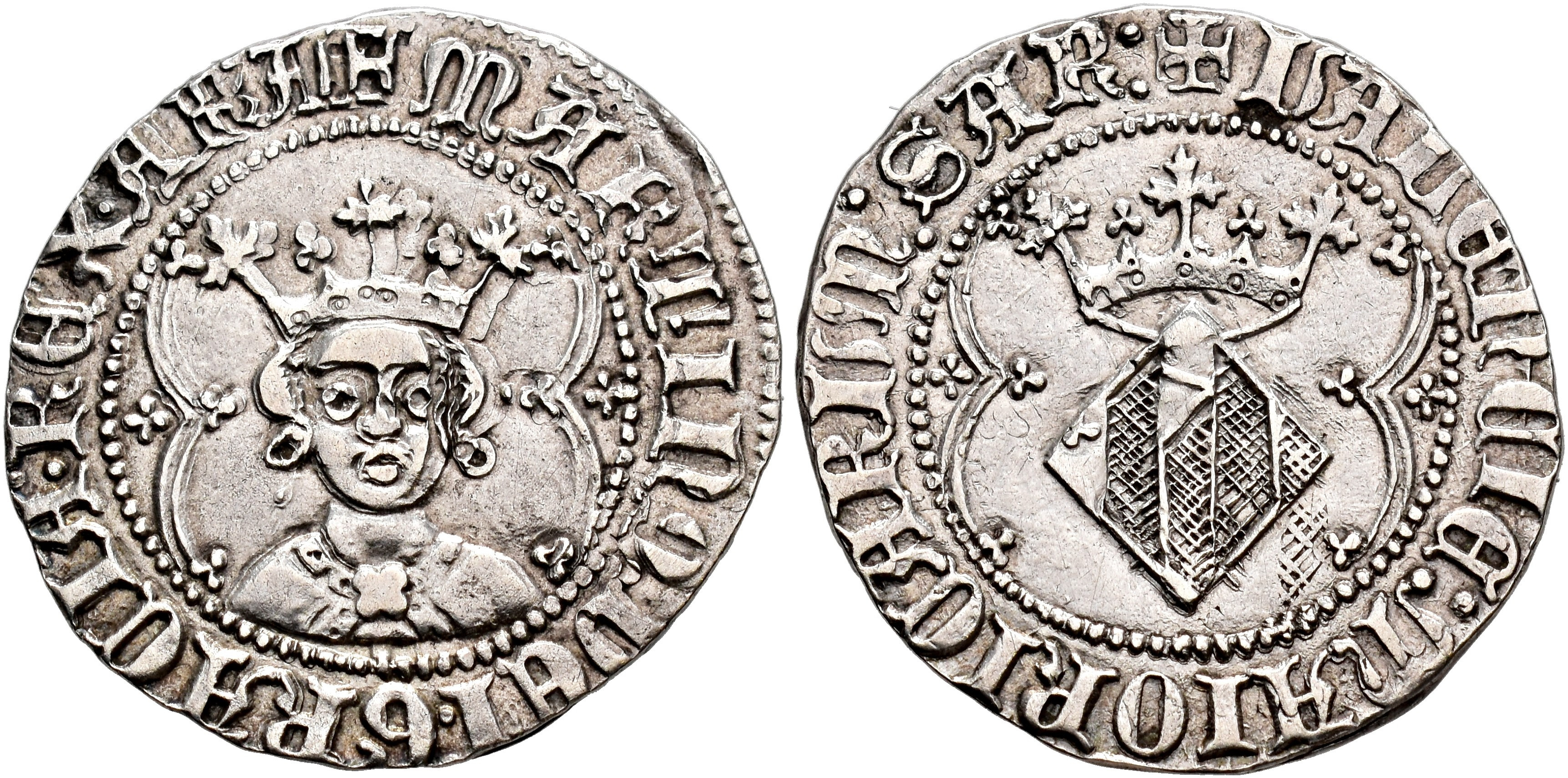 CORONA DE ARAGÓN. MARTÍN EL HUMANO (1396-1410). Real. Valencia. ARA y SAR al final de las leyendas de anv. y rev. AR 3,36 g. 23,5 mm. IV-527.1. MBC+.