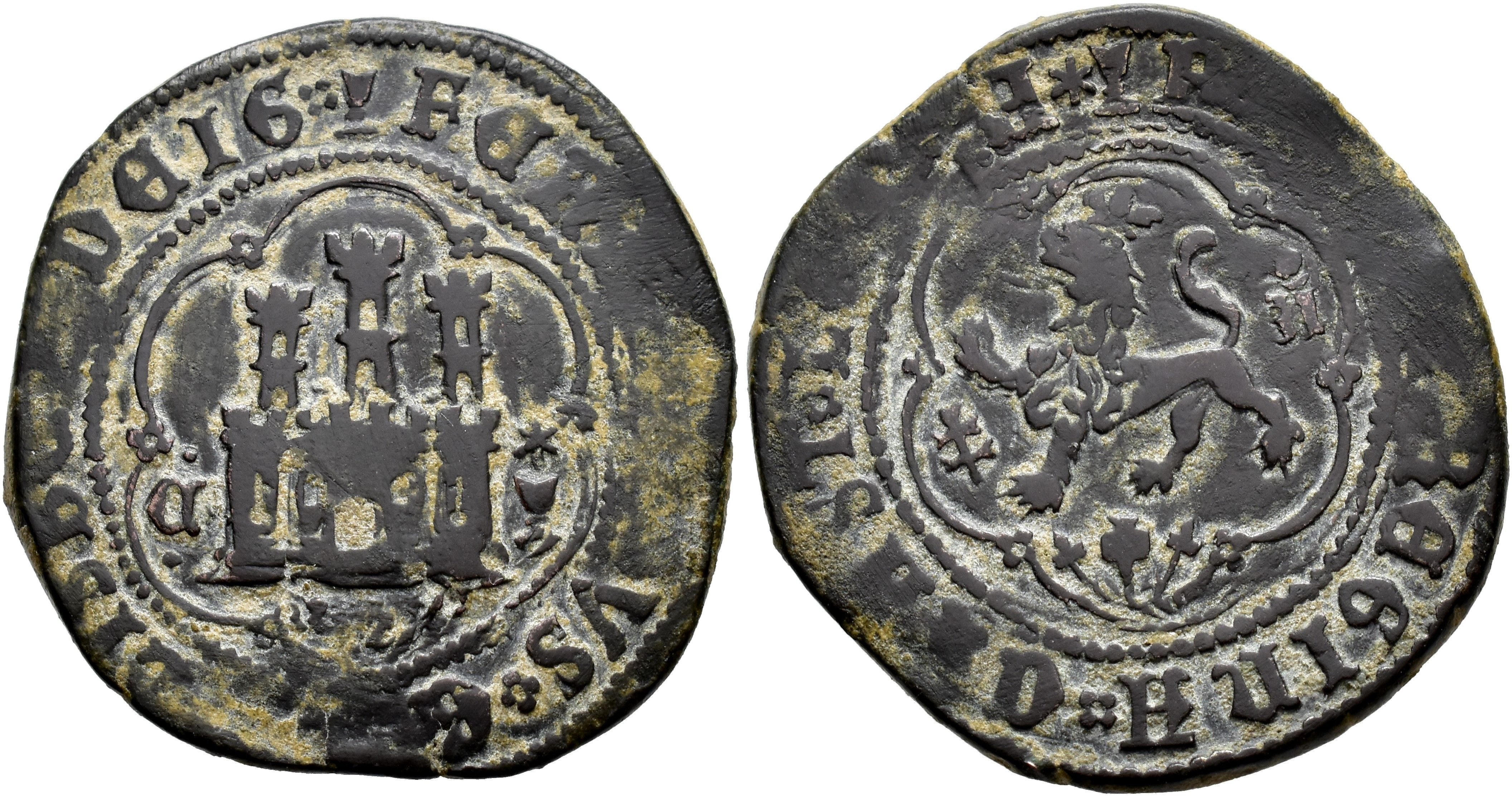 REYES CATÓLICOS. 4 maravedís. Cuenca. Cruz patriarcal y A en rev. CU 9,73 g. 29,8 mm. RS-307. MBC-/MBC.
