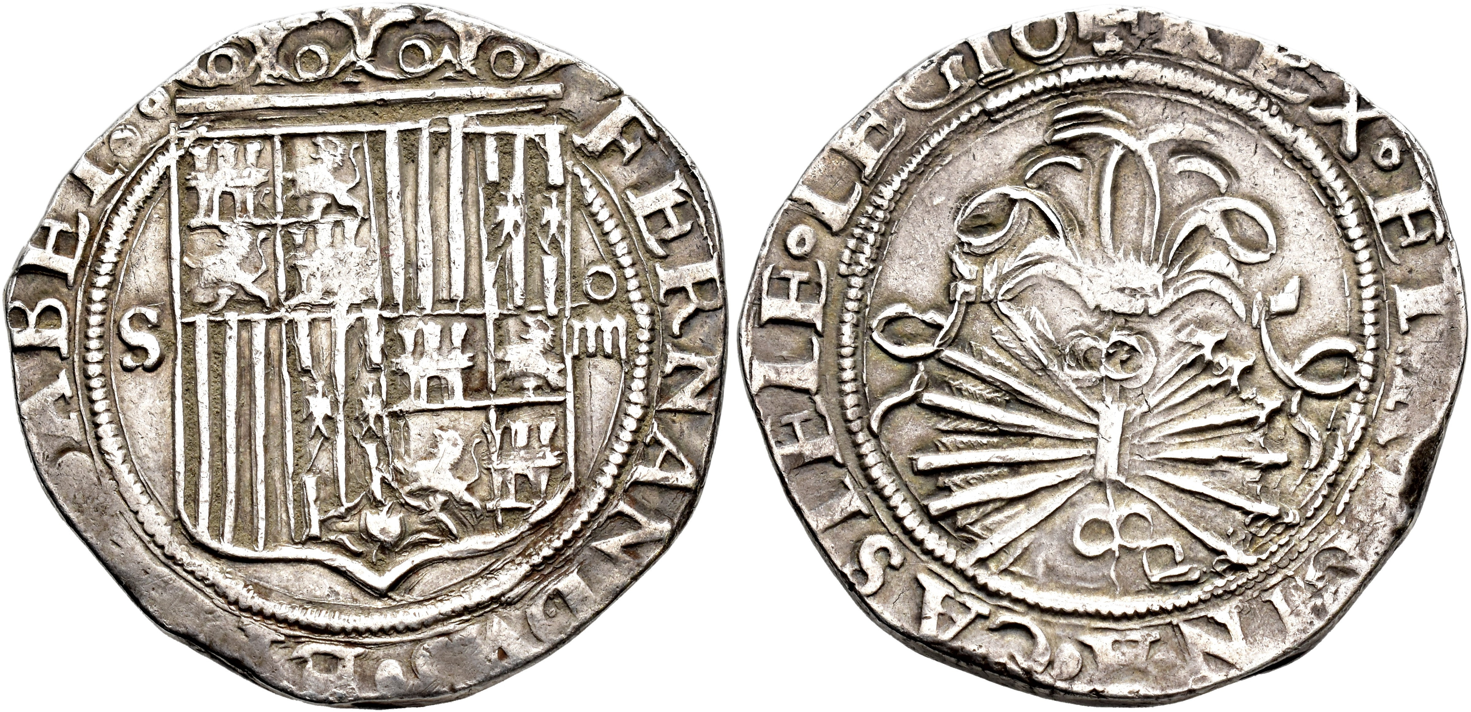 REYES CATÓLICOS. 4 reales. Sevilla. S IIII. D cuadrada en rev. AR 13,64 g. 31,8 mm. AC-564. MBC.