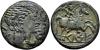 HISPANIA ANTIGUA. KELSE. Unidad. A/ Cabeza con torques a der., alrededor 3 delfines. R/ Jinete con palma a der., debajo sobre línea KeLSE. AE 11,77 g. 26,9 mm. I-771; ACIP-1482. Pequeña erosión en anv. Pátina verde oscuro. EBC-.