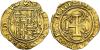 JUANA Y CARLOS. Escudo. Sevilla. S-*. AU 3,39 g. 22,2 mm. AC-196. Defectos de cospel en canto. MBC.