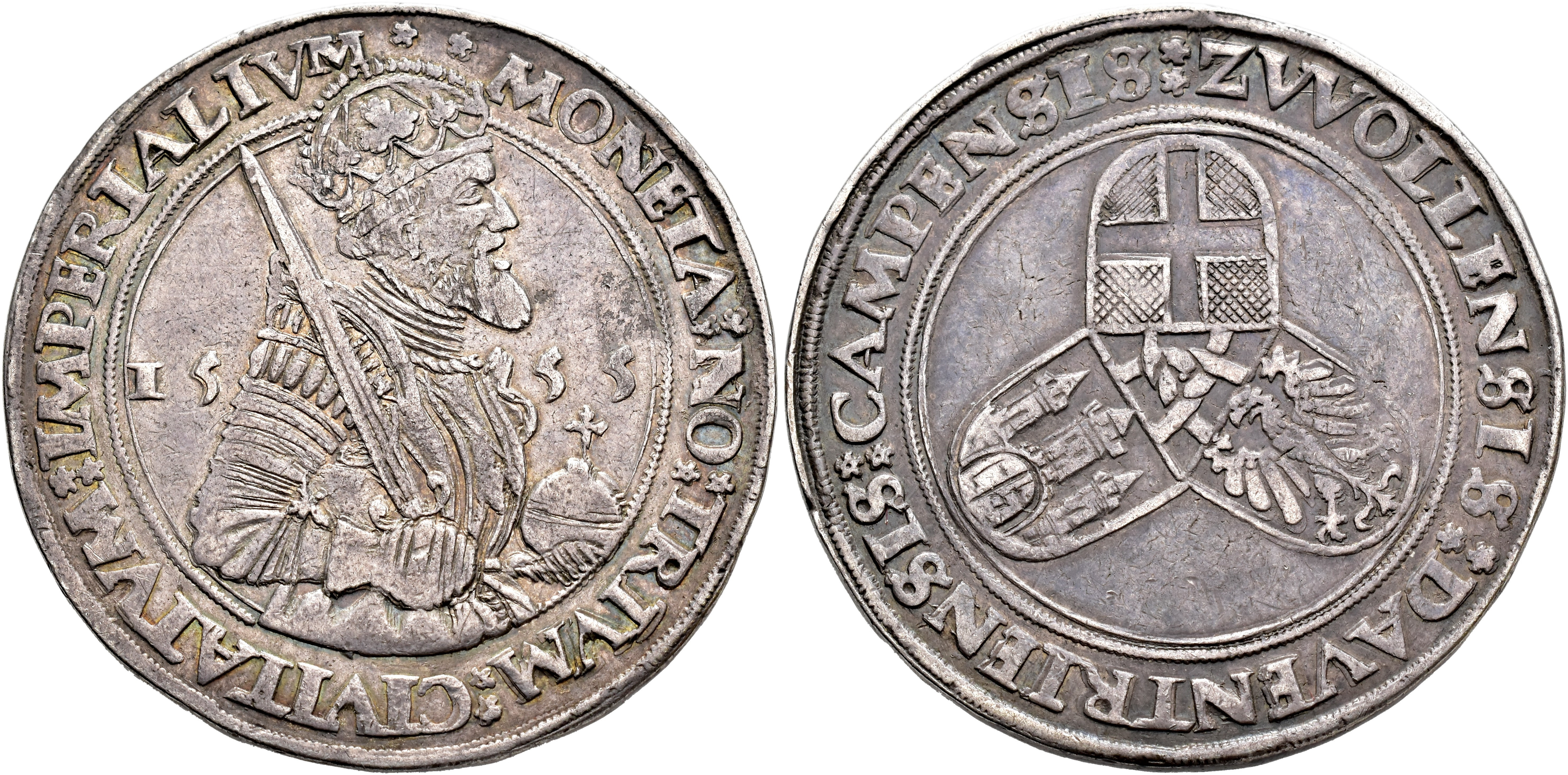 CARLOS V. Tálero. 1555. Daventer, Campen y Zwolle. AR 28,39 g. 40 mm. Dav.-8534. MBC.