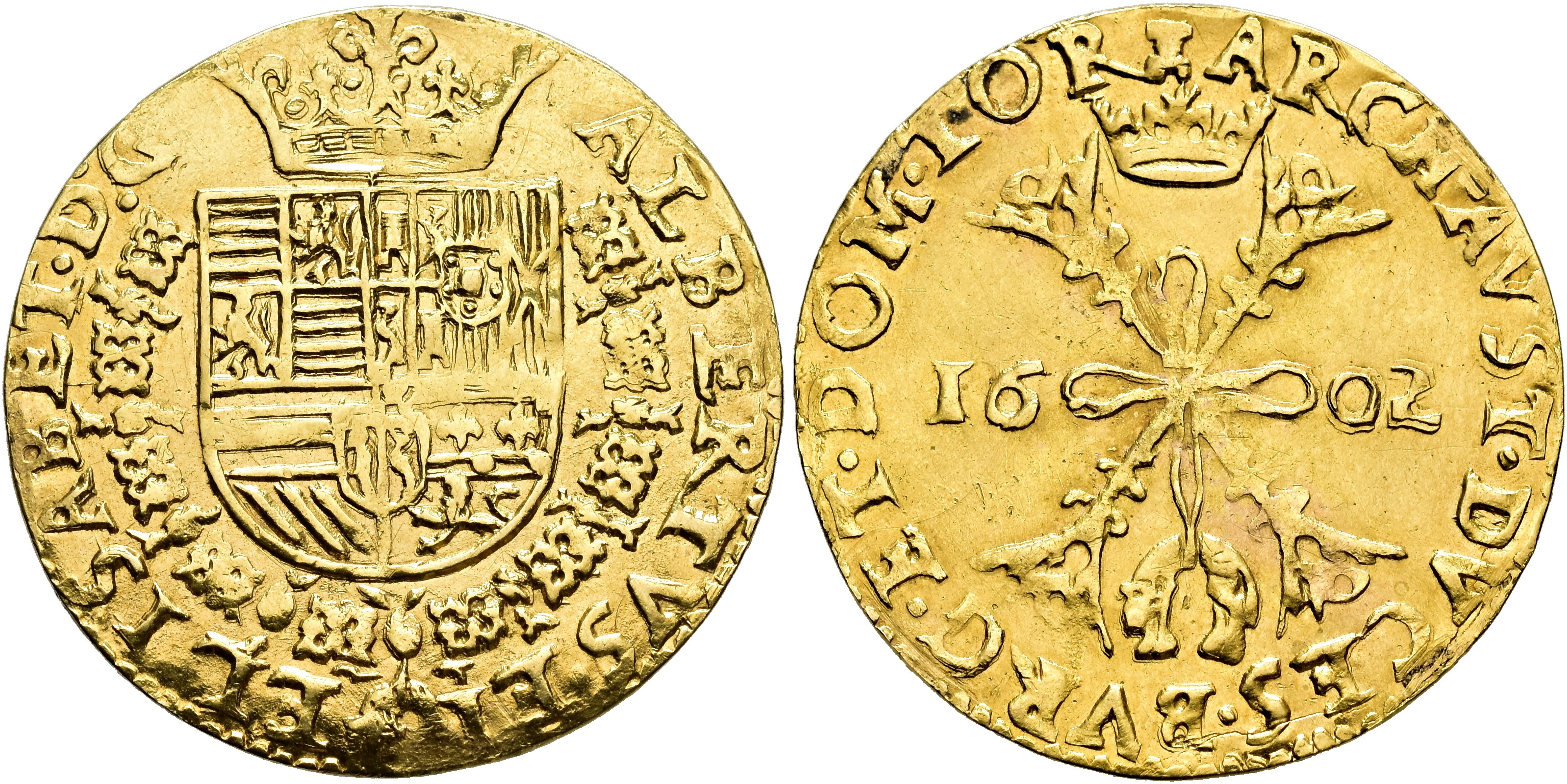 ALBERTO E ISABEL. Doble albertín. 1602. Tournai. AU 5,06 g. 27,8 mm. Vanhoudt-582.TO. MBC+.