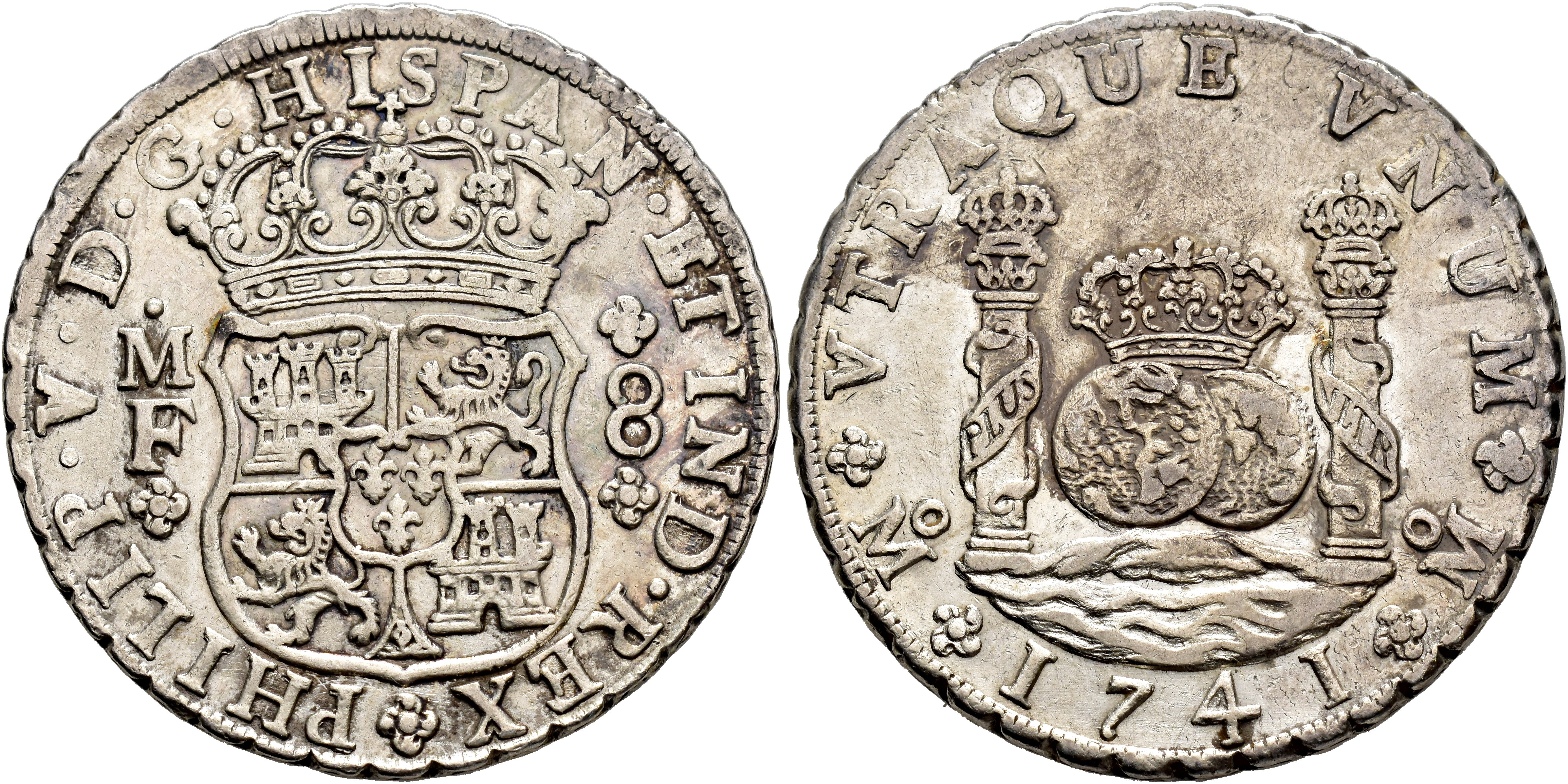 FELIPE V. 8 reales. 1741. México. MF. AR 26,78 g. 38,1 mm. VI-1149; AC-1458. MBC+.