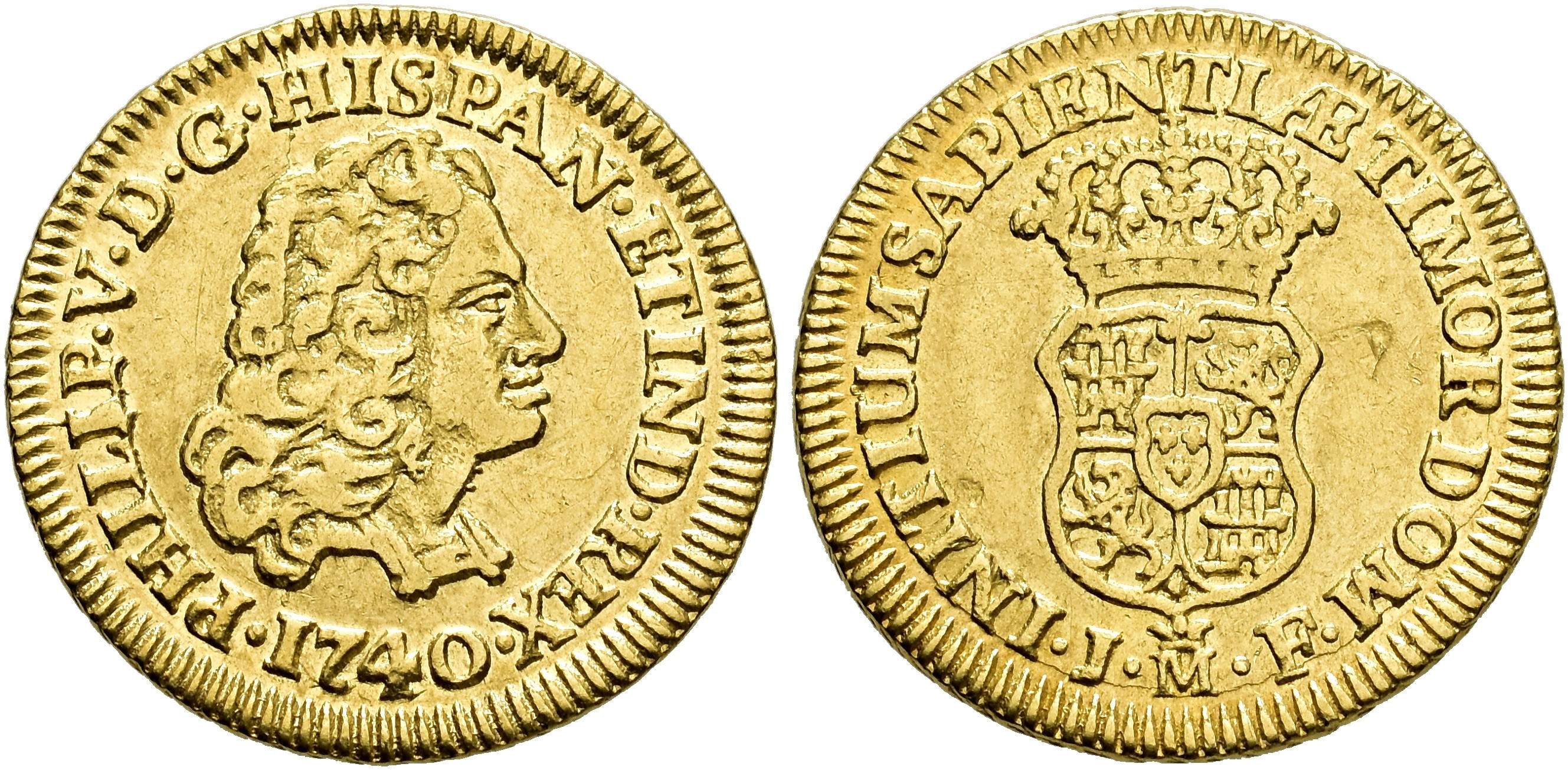FELIPE V. Escudo. 1740. Madrid. JF. AU 3,36 g. 18 mm. VI-1339; AC-1719. Pequeñas marcas. MBC+.
