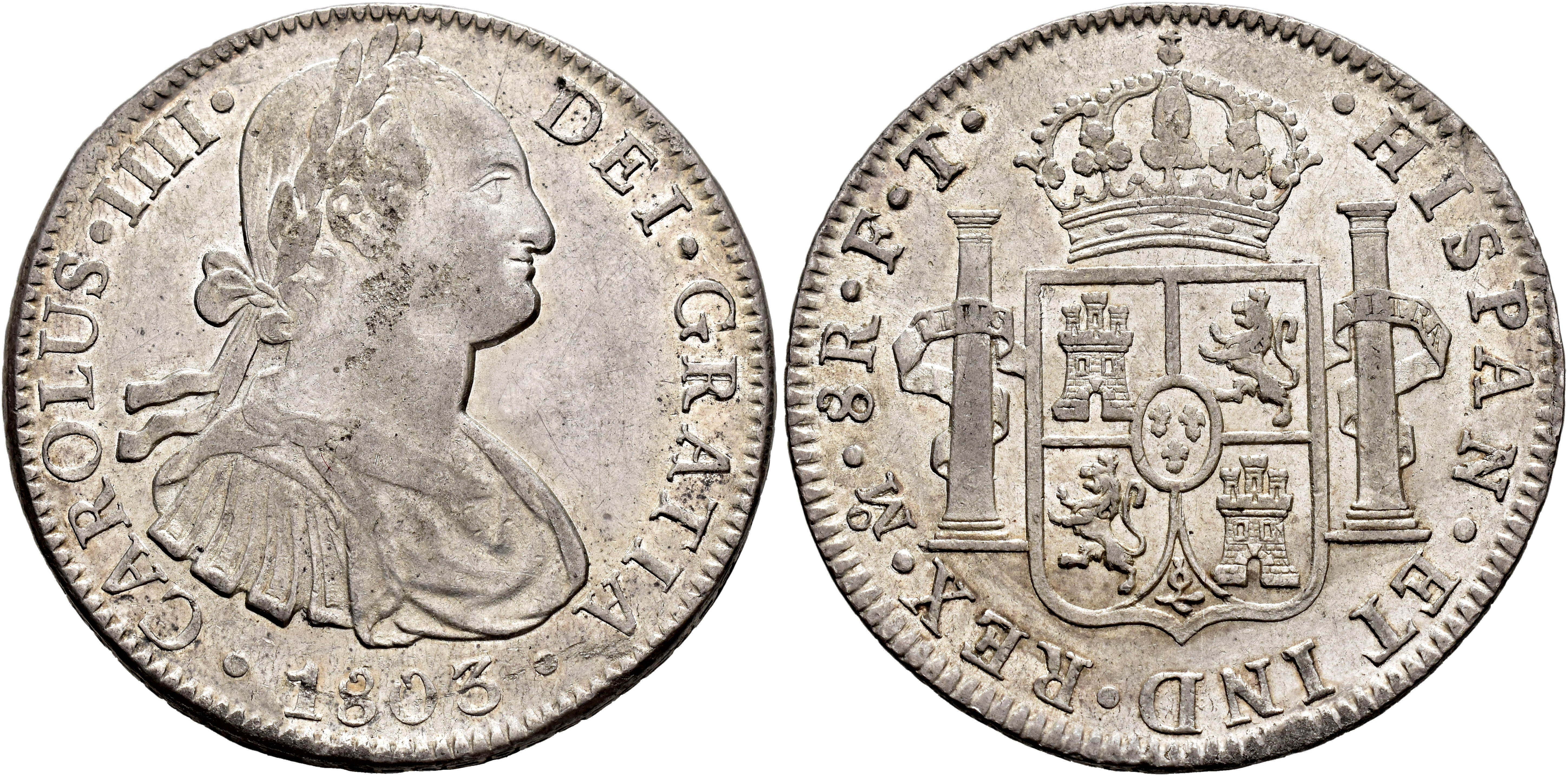 CARLOS IV. 8 reales. 1803. México. FT. AR 26,9 g. 39,4 mm. VI-800; AC-977. R.B.O. MBC/EBC-.