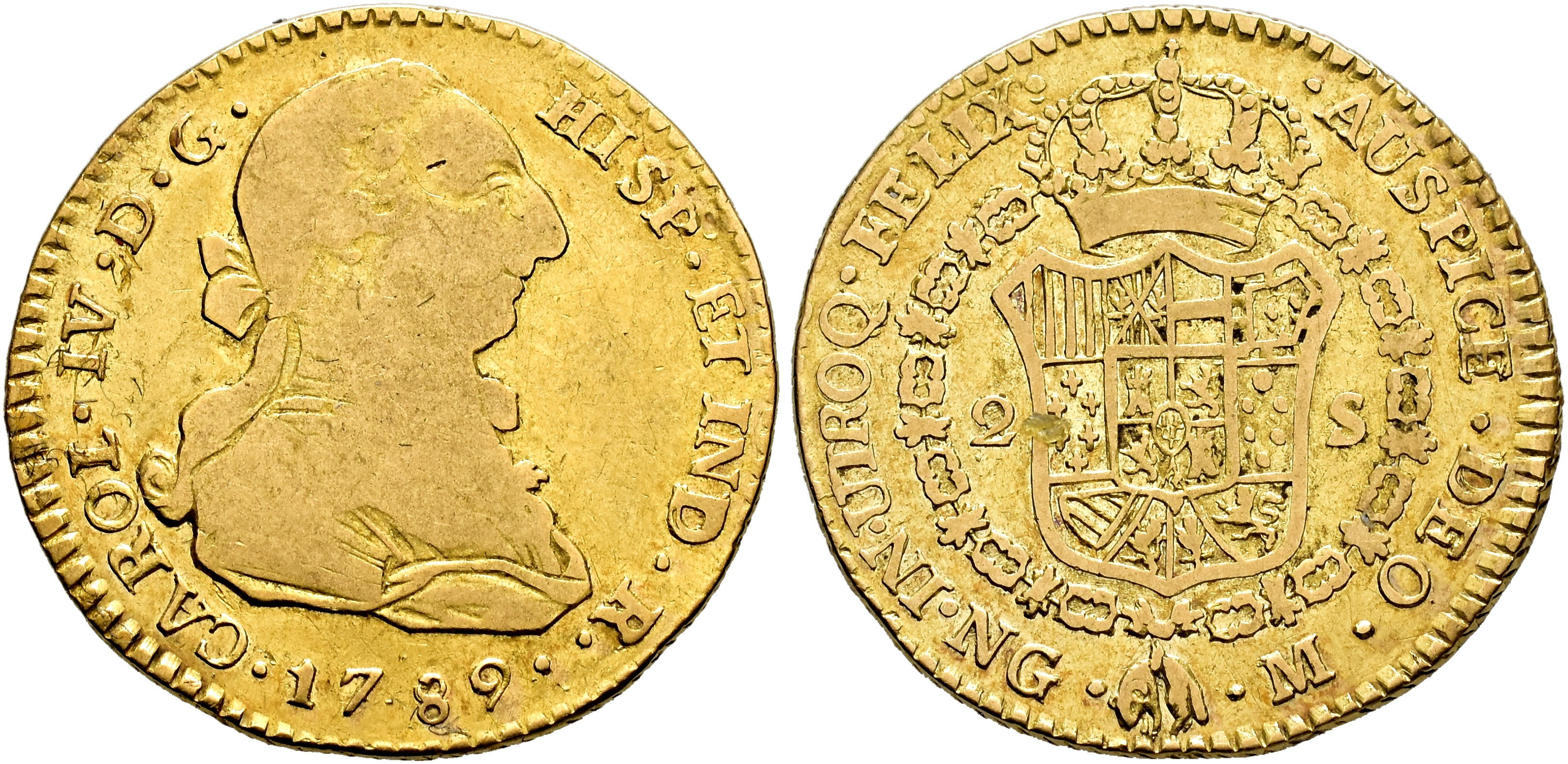 CARLOS IV. 2 escudos. 1789. Nueva Guatemala. M. AU 6,65 g. 21,7 mm. VI-1020; AC-1250. BC+/MBC-. Rara.