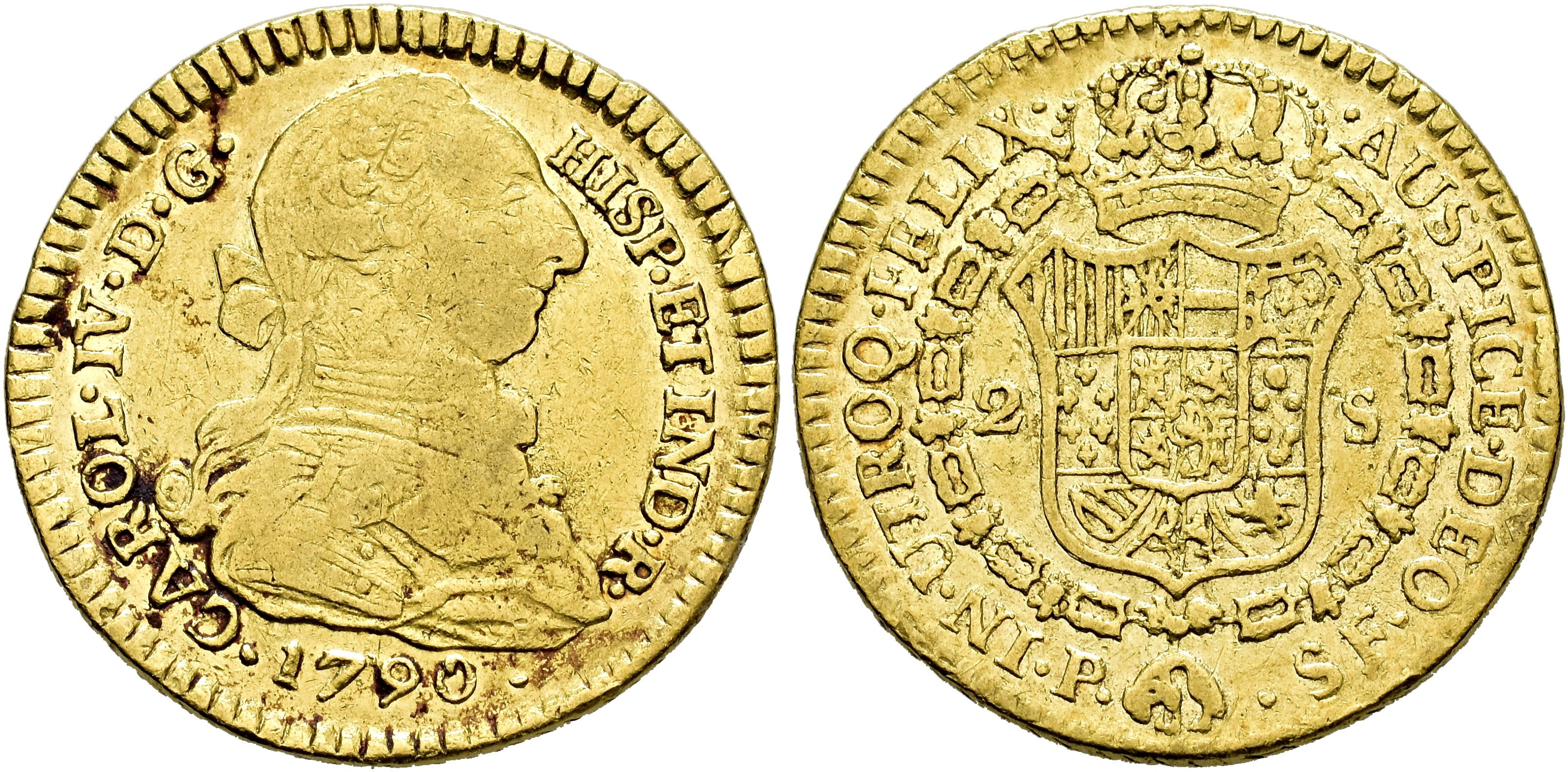 CARLOS IV. 2 escudos. 1790. Popayán. SF. AU 6,72 g. 22 mm. VI-1102; AC-1347. MBC-/MBC. Escasa.