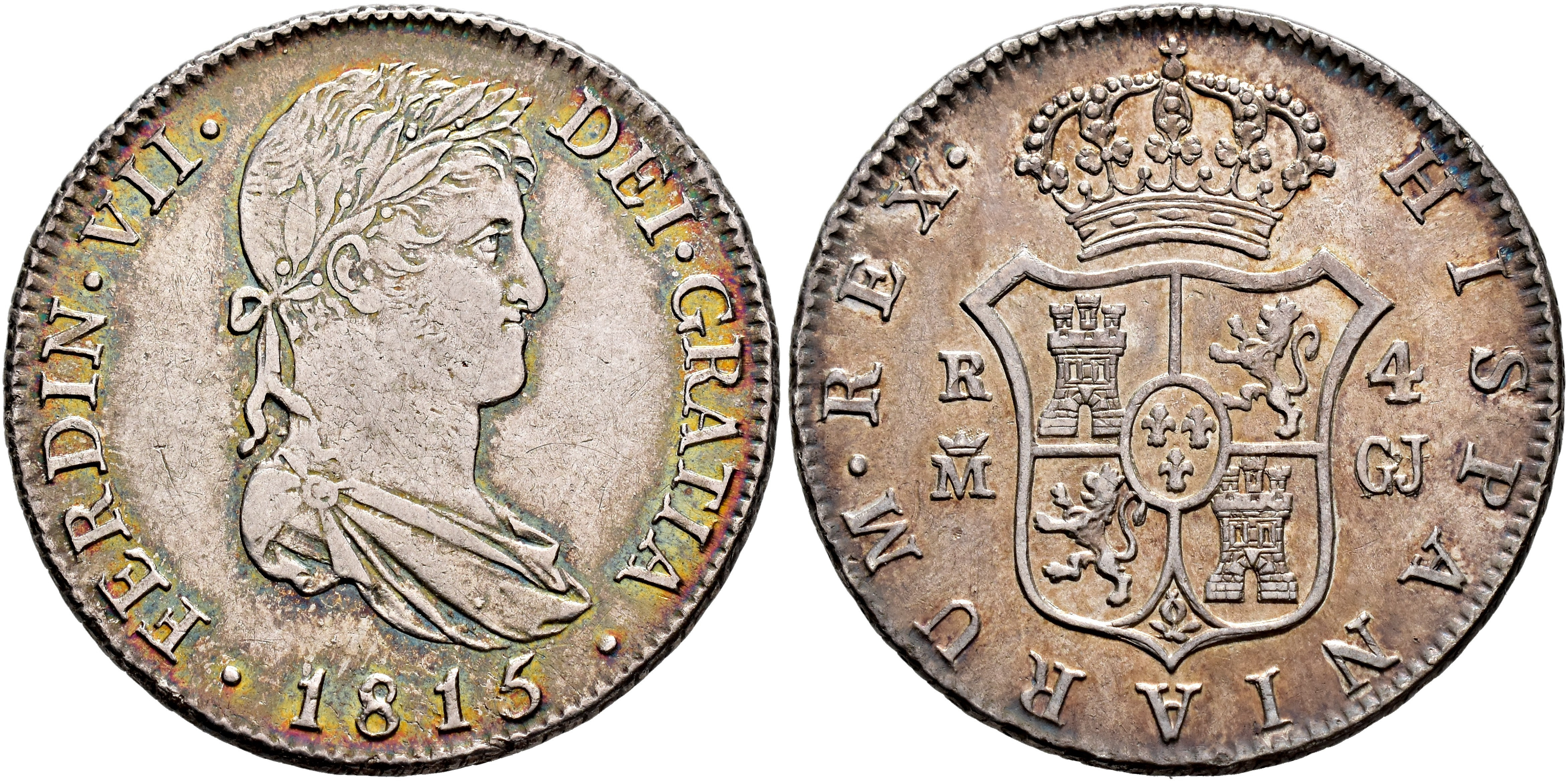 FERNANDO VII. 4 reales. 1815. Madrid. GJ. AR 13,9 g. 32,1 mm. VI-883; AC-1081. MBC+/EBC-.