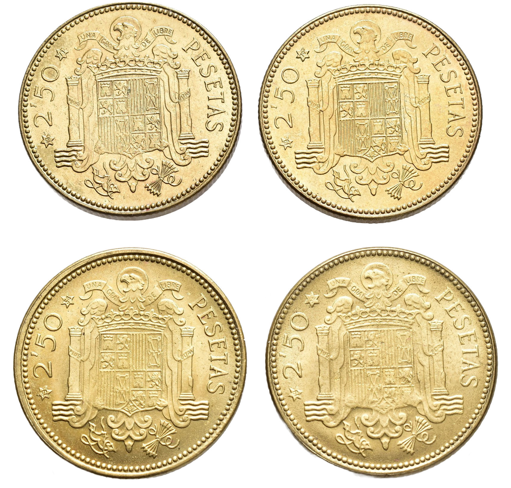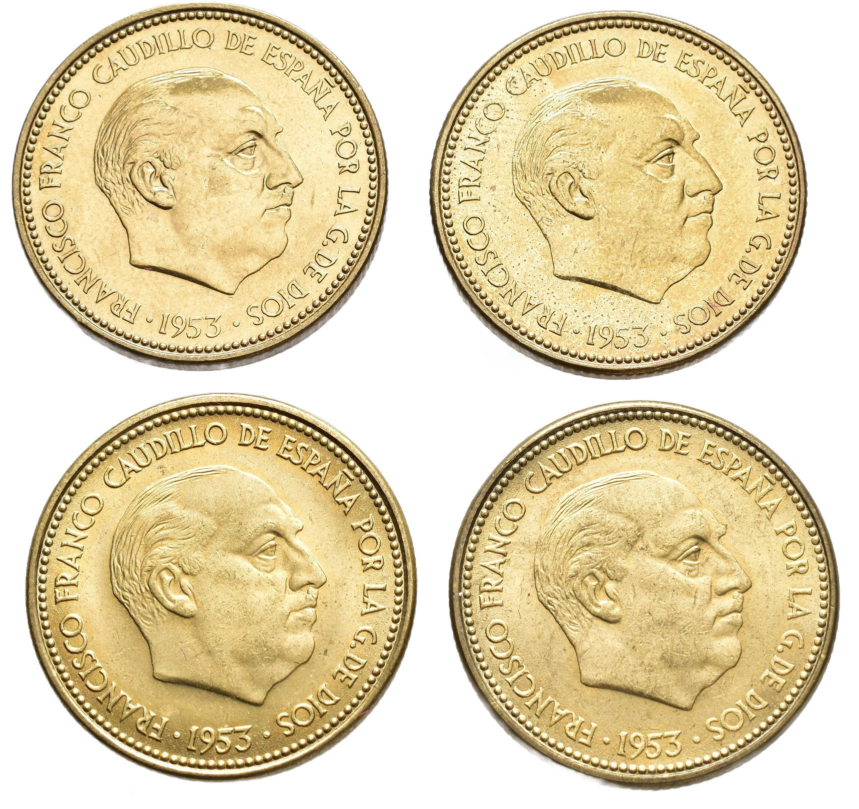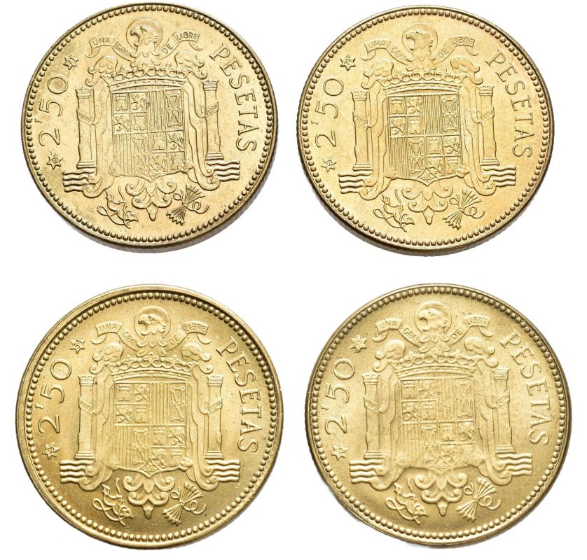 F. FRANCO. Lote de 4 monedas de 2,5 pesetas, Madrid 1953*19-54, 56, 70 y 71. VII-341, 342, 346 y 347. 2 SC y 2 prueba.