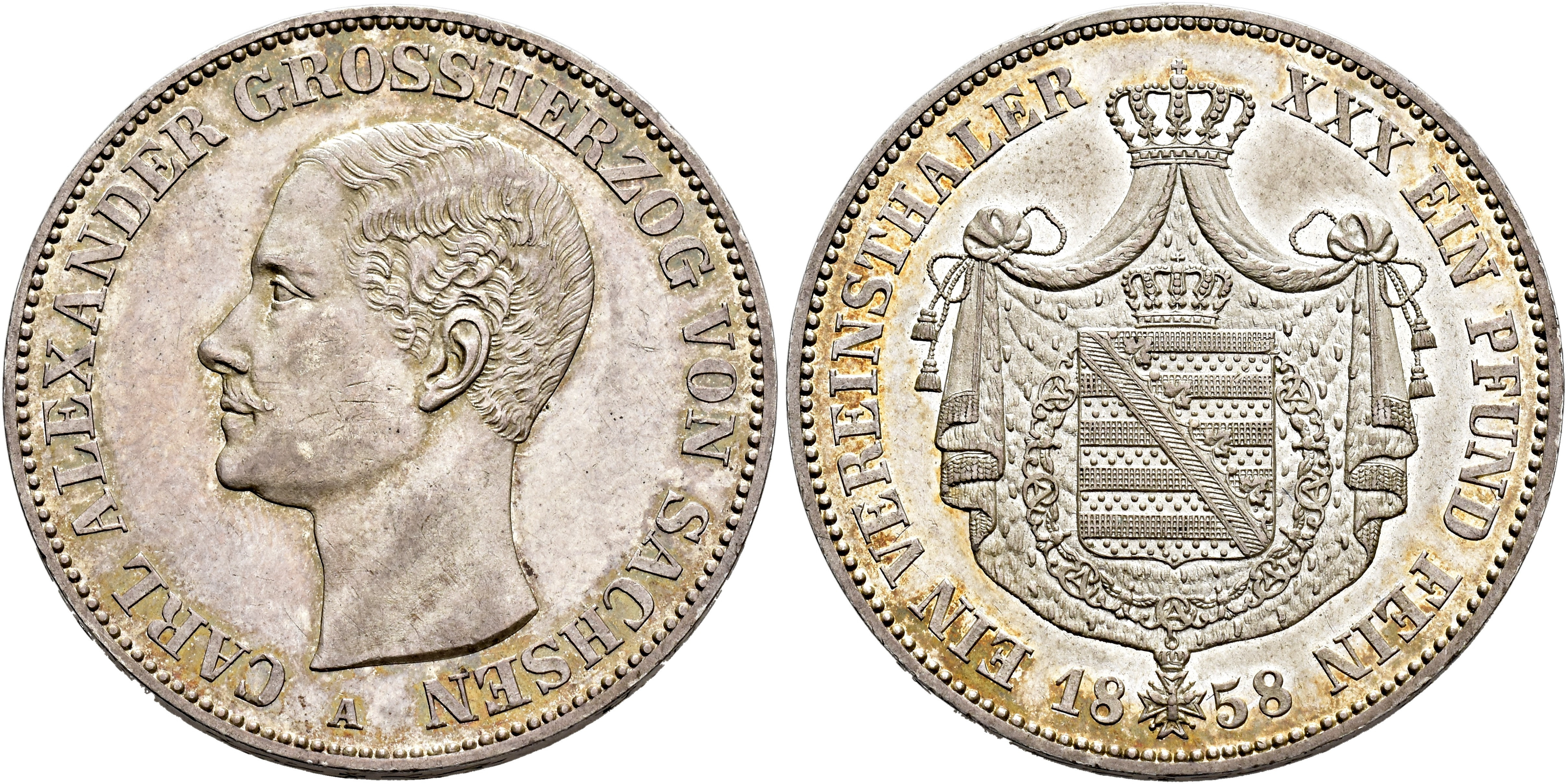 MONEDA EXTRANJERA. ESTADOS ALEMANES Y ALEMANIA. SAJONIA-WEIMAR-EISENACH. Carlos Alejandro. Tálero. 1858. A. AR 18,53 g. 33 mm. KM-209. R.B.O. EBC+.