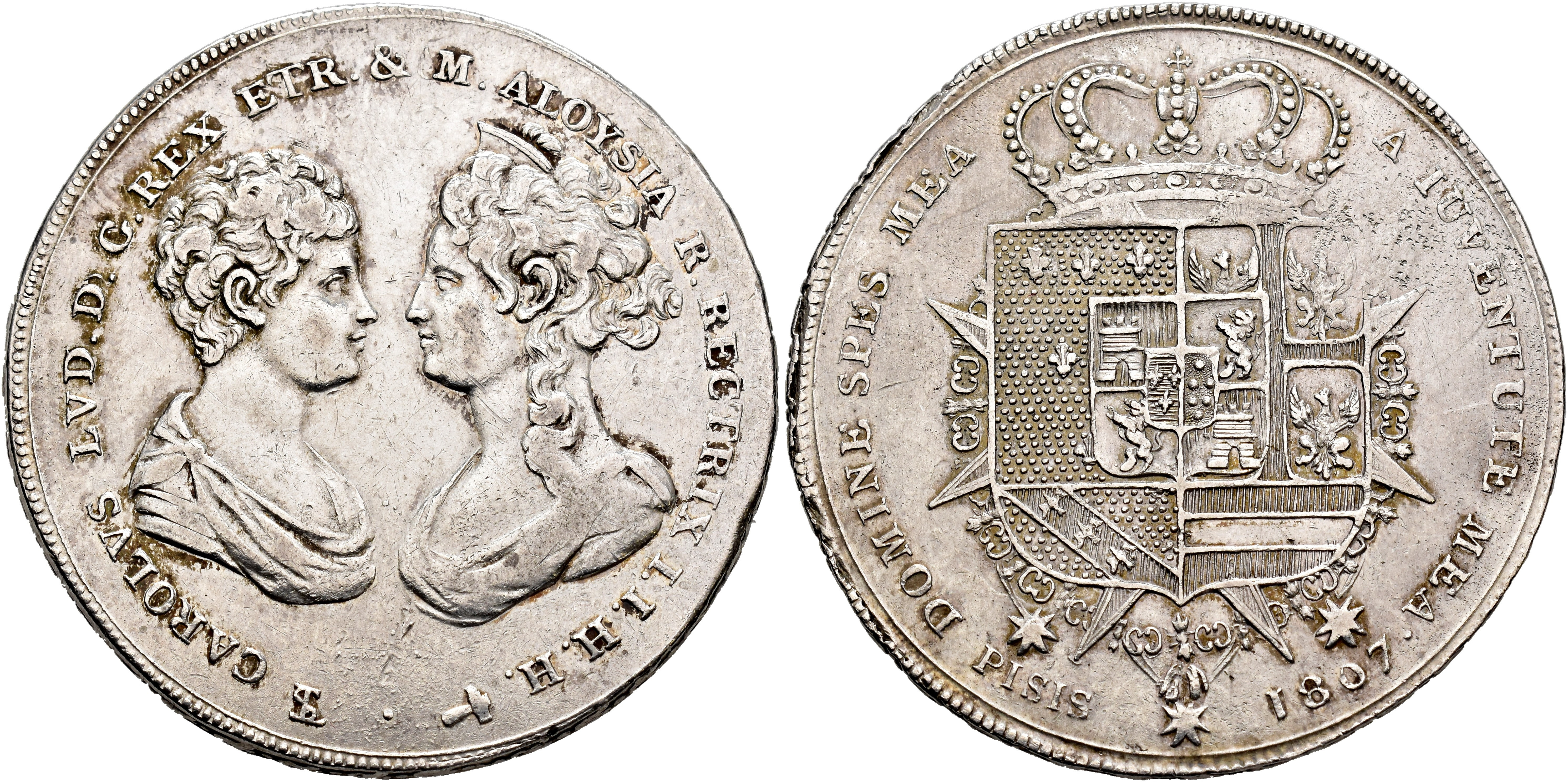 MONEDA EXTRANJERA. ESTADOS ITALIANOS-ITALIA. ETRURIA-TOSCANA. Carlos Luis. Francescone (10 paoli). 1807. AR 27,22 g. 41 mm. KM-50.1. Golpecitos. MBC/MBC+.