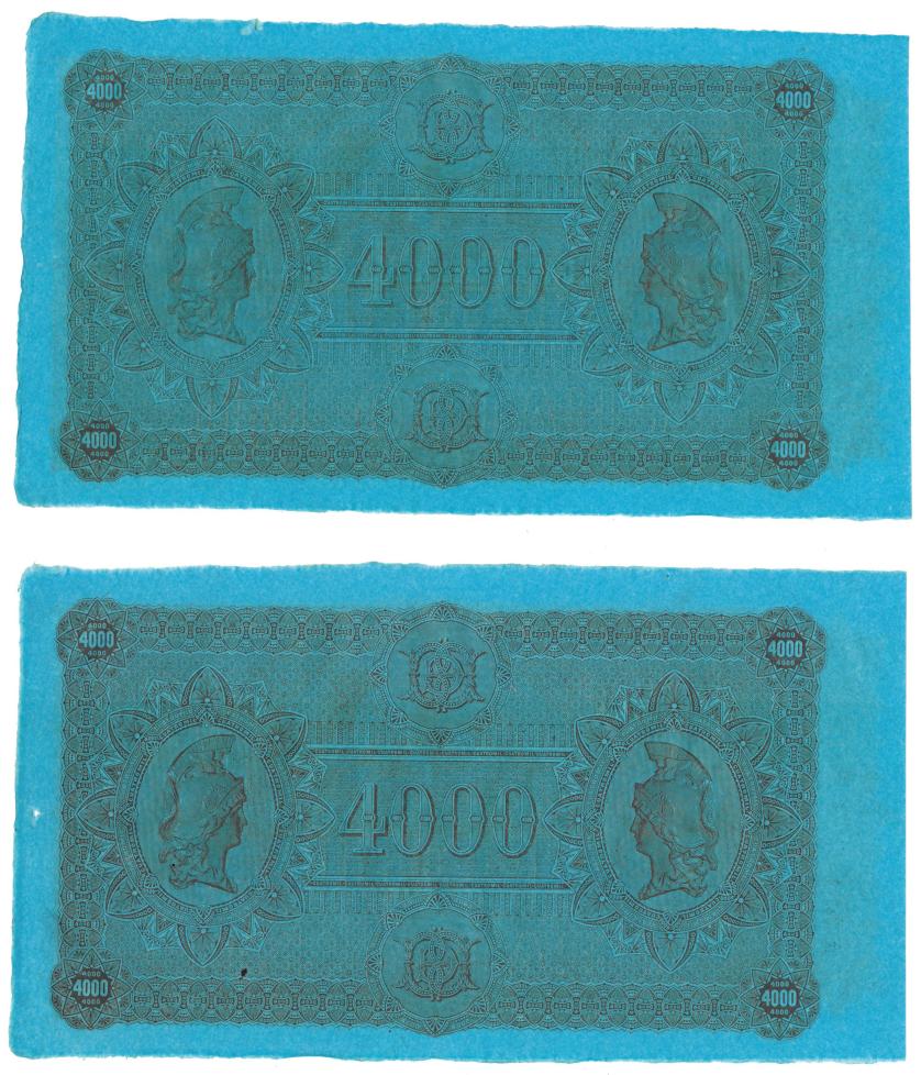 BILLETES ESPAÑOLES. BANCO DE BILBAO. Lote de 2 billetes de 4000 reales, 1856c, Serie A, ED-148. Con matriz (recortada) y sin firmas. Pareja correlativa. SC.