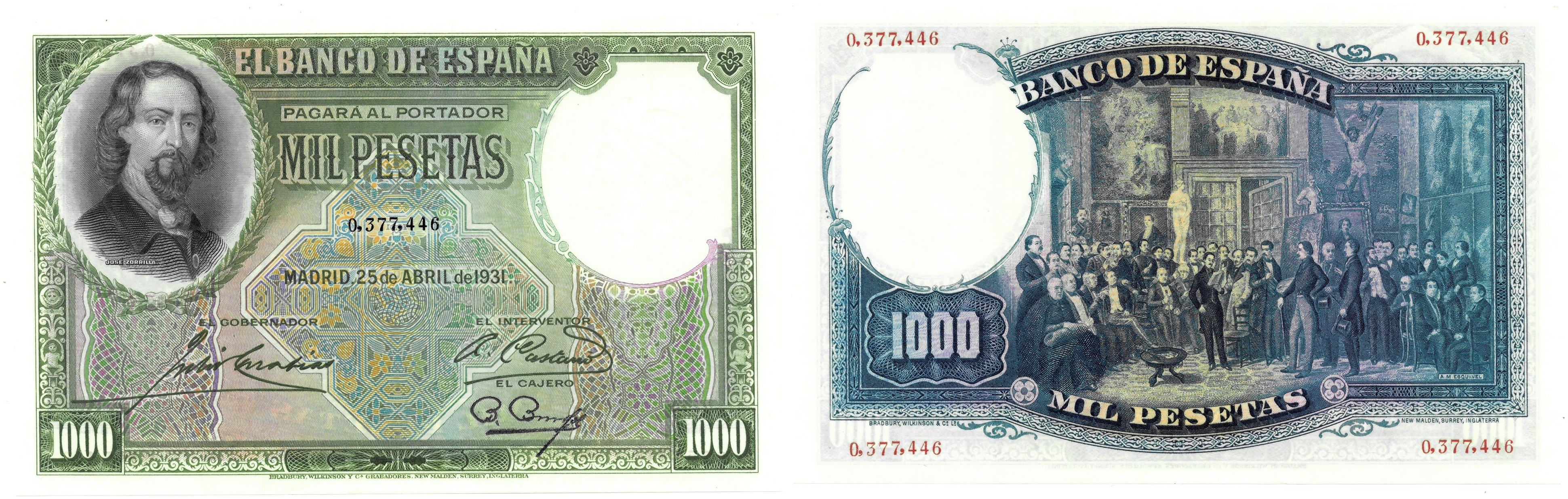 BILLETES ESPAÑOLES. BANCO DE ESPAÑA. 1000 pesetas, 25 de abril de 1931, Sin serie, ED-362. Mantiene todos los relieves. SC.