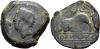 HISPANIA ANTIGUA. ORIPPO. As. A/ Cabeza masculina a izq., delante racimo de uvas. R/ Toro embistiendo a izq., encima creciente, debajo entre líneas ORIPENSE Y B. AE 18,79 g. 30,4 mm. I-1899; ACIP-2458; CC-3309, mismo ejemplar. Cospel irregular. Pátina verde oscuro. BC+. Muy rara.