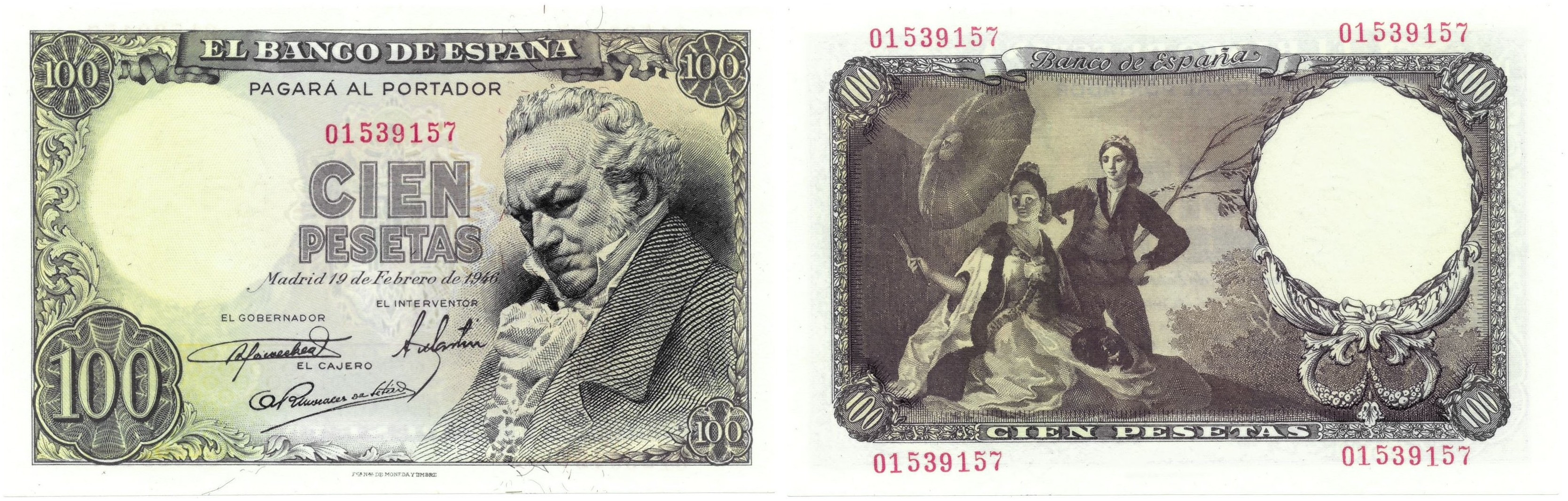 BILLETES ESPAÑOLES. BANCO DE ESPAÑA. 100 pesetas, 19 de febrero de 1946, Sin serie, ED-451. Prensado. SC.