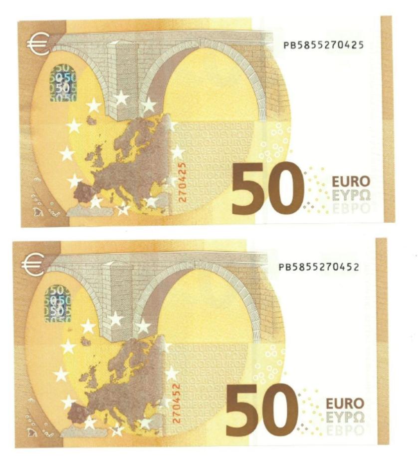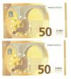 BILLETES ESPAÑOLES. BANCO DE ESPAÑA. Lote de 2 billetes. 50 euros, 2017. Serie Europa, Serie PB (Países Bajos), ED-. Firma de Draghi. Pareja correlativa. SC.
