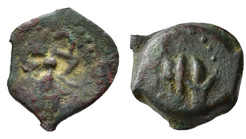 HISPANIA ANTIGUA. EBUSUS. Octavo. A/ Bes. R/ Toro embistiendo a der. AE 0,99 g. 10,3 mm. I-924; ACIP-706; CC-557, mismo ejemplar. BC+.