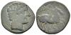 HISPANIA ANTIGUA. KESE. As. A/ Cabeza masculina a der. R/ Jinete con palma a der., debajo sobre línea KeSE. AE 13,35 g. 26,4 mm. I-2271; ACIP-1116. Rayas en anv. Pátina verde oscuro. BC+.