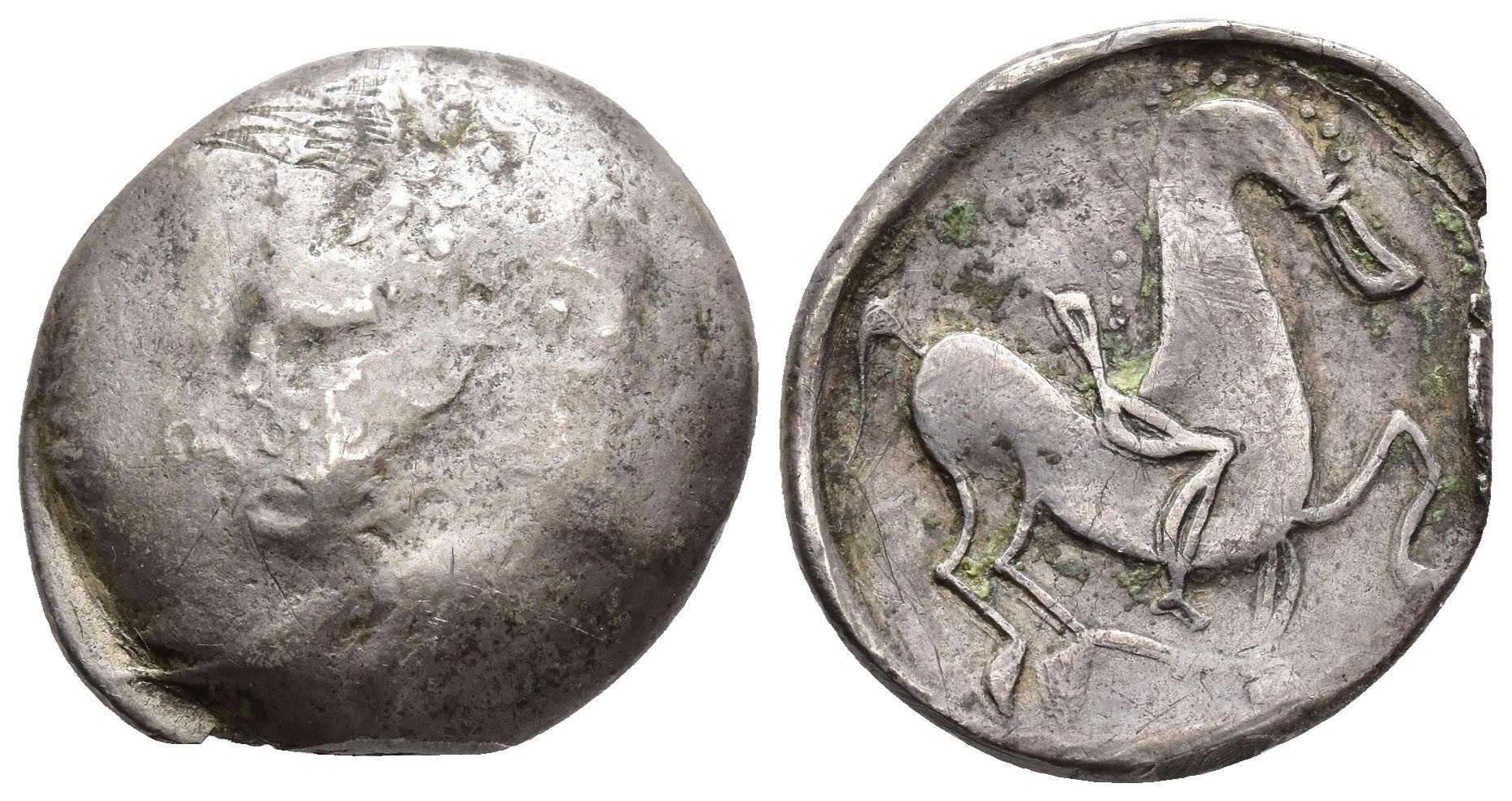 GRECIA ANTIGUA. CELTAS DEL DANUBIO. Imitación de Filipo II. Tetradracma. A/ Liso. R/ Jinete a der. AR 13,56 g. 27,1 mm. A/ Liso. R/MBC-.