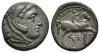 GRECIA ANTIGUA. MACEDONIA. Casandro. Pella. AE (306-297 a.C.). A/ Cabeza de Herakles con leonté a der. R/ Jinete a der., debajo monograma, entre las patas T y delante estrella. AE 5,91 g. 19,9 mm. COP-1142, var. monograma. Pátina verde. MBC+.