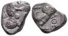 GRECIA ANTIGUA. ÁTICA. Atenas. Imitación Oriental A/ Cabeza de Atenea a der. R/ Lechuza a der. mirando de frente; detrás creciente y rama de olivo, delante ley. griega AQE, todo dentro de cuadrado incuso. AR 17,12 g. 24,4 mm. Cospel de forma triangular. COP-65 sim. Cospel irregular. MBC.