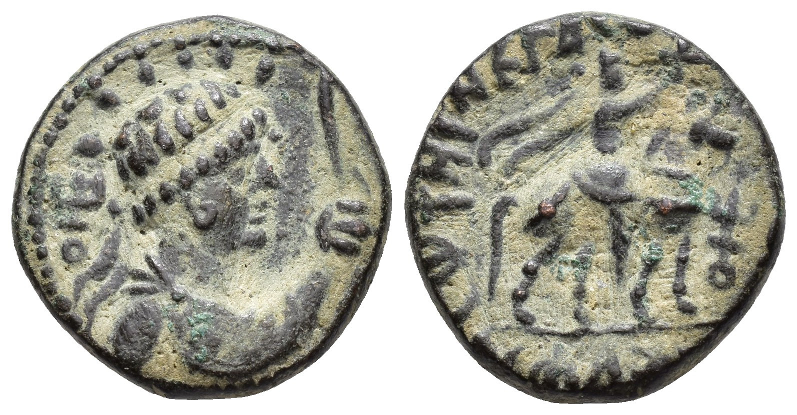 GRECIA ANTIGUA. IMPERIO KUSHÁN. Soter. Tetradracma (80-90 d.C.). A/ Busto diademado y con cetro a der. R/ Jinete a der. AR 8,51 g. 21,3 mm. Senior-B 17.1. MBC/MBC-.