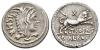 REPÚBLICA ROMANA. THORIA. L. Thorius Balbus. Denario. Norte de Italia (105 a.C.). A/ Cabeza de Juno Sospita a der., detrás I.S.M.R. R/ Toro corriendo a der., encima X; L THORIVS/BALBVS. AR 4,21 g. 18,9 mm. CRAW-316.1; FFC-1141. MBC.