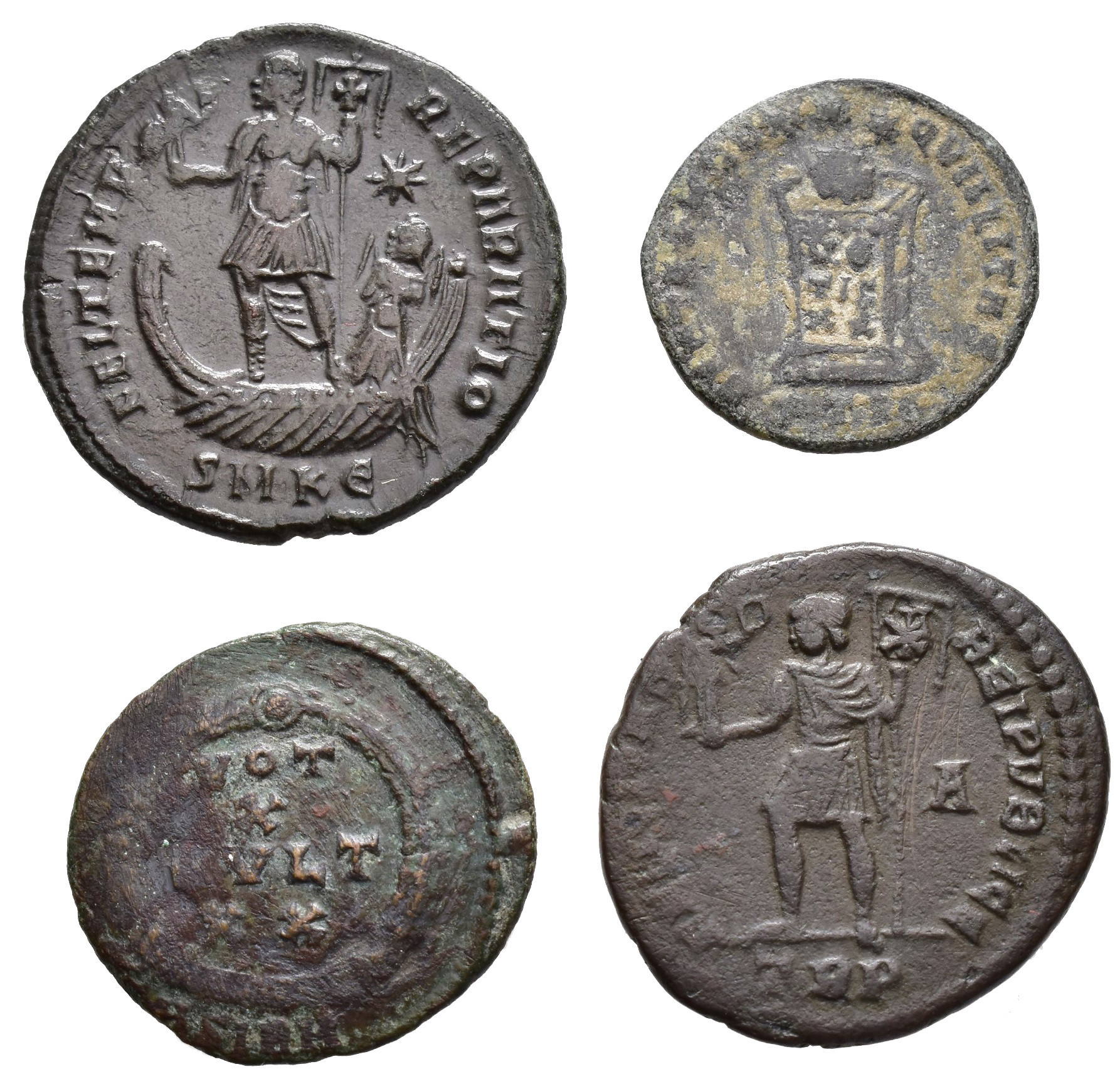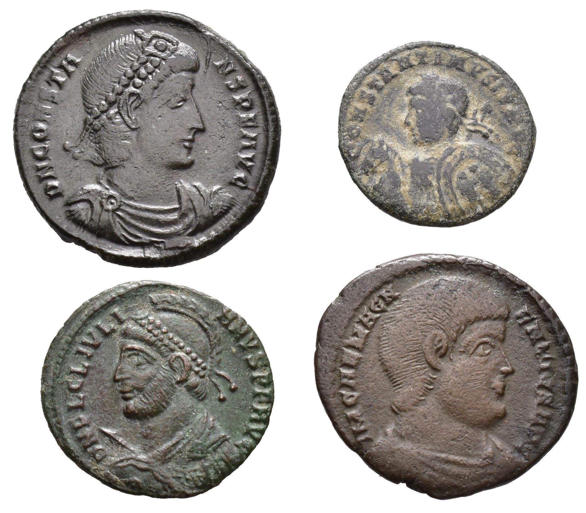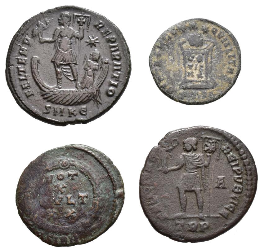 IMPERIO ROMANO. Lote de 4 follis: Constante, Constantino II, Juliano y Magnencio. De BC a MBC+.