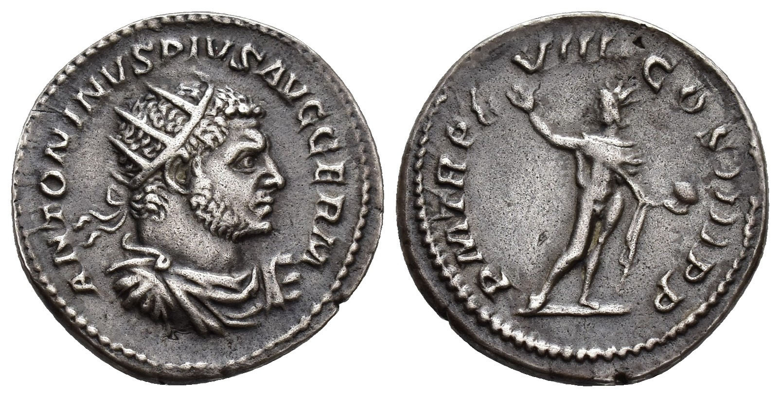 IMPERIO ROMANO. CARACALLA (211-217). Antoniniano. Roma (214). A/ Busto radiado, drapeado y acorazado a der.; ANTONINVS PIVS AVG GERM. R/ Sol mirando a izq.; P M TR P XVIIII COS IIII P P. VE 4,47 g. 21,7 mm. RIC-264B. MBC/MBC-.