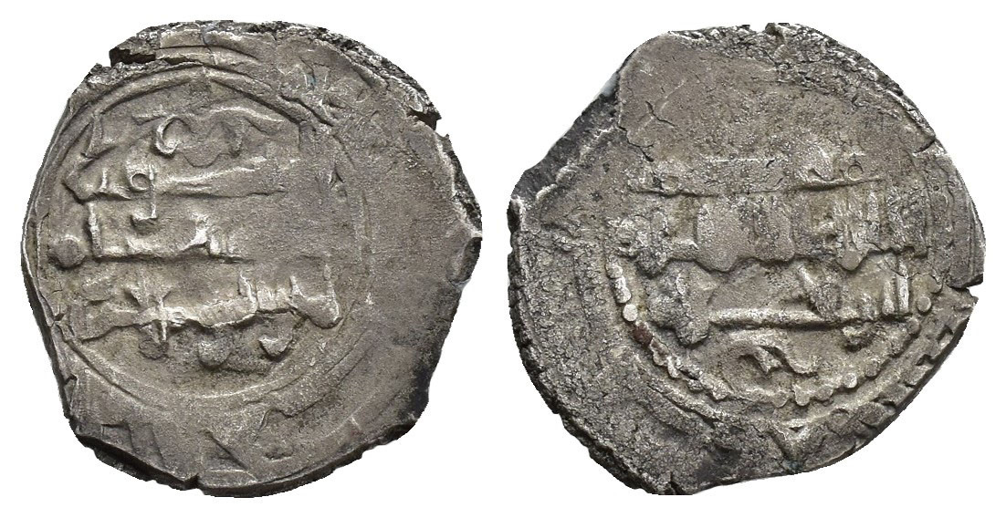 ACUÑACIONES HISPANO-ÁRABES. TAIFAS DE VALENCIA. Abd-al-Azid. Fracción de dírham. S.F. S.C. AR 1,2 g. 14,3 mm. Prieto-150 bis. Vanos. BC+.