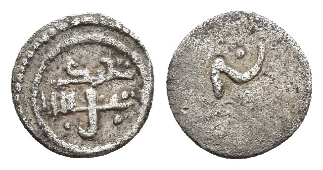 ACUÑACIONES HISPANO-ÁRABES. POST. ALMORÁVIDES. Emisiones anónimas. 1/2 quirate. S.F. S.C. AR 0,43 g. 8,3 mm. Benito-V2. MBC/MBC-.