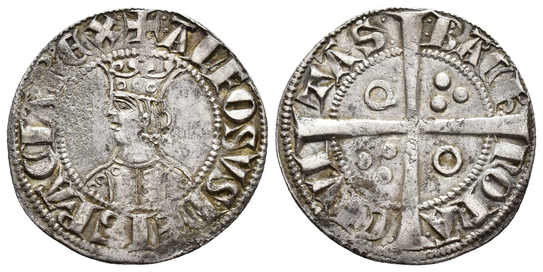 CORONA DE ARAGÓN. ALFONSO EL LIBERAL (1285-1291). Croat. Barcelona. CIVI en tres puntos. AR 3,11 g. 23,7 mm. IV-33. Erosiones. MBC+.