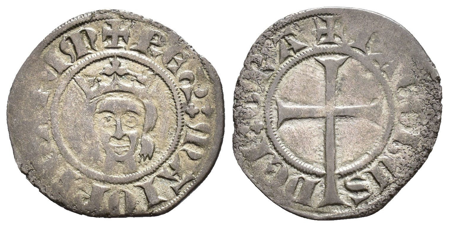 REINO DE MALLORCA. JAIME II DE MALLORCA (1276-1311). Dobler. VE 1,68 g. 19,5 mm. IV-541. Acuñación floja en ley. del anv. MBC.