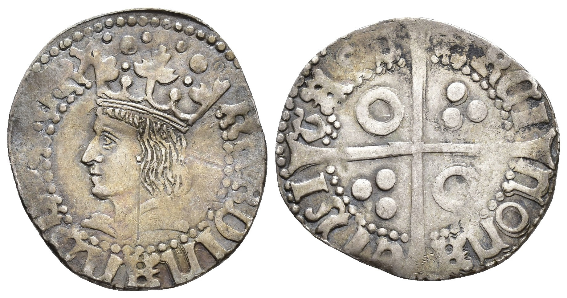 FERNANDO EL CATÓLICO. Croat. Barcelona. CIVI en tres puntos. AR 3,13 g. 26 mm. AC-53. Rayas. Ligeramente alabeada. MBC/MBC-.