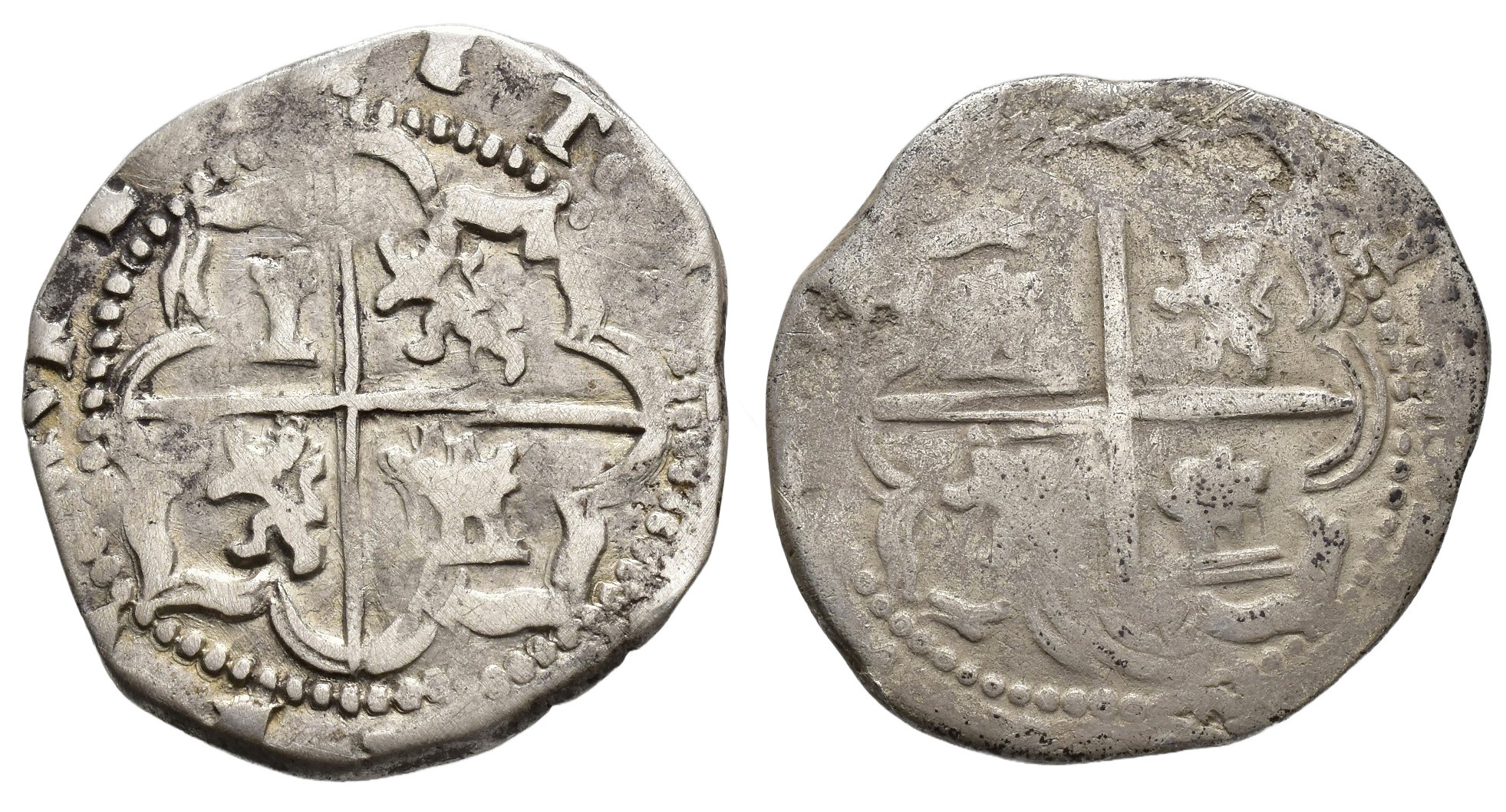FELIPE II. Lote de 2 monedas de 2 reales de Potosí, B. BC-/BC+.