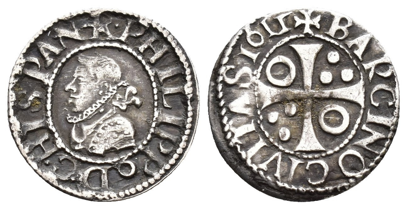 FELIPE III. 1/2 croat. 1611. Barcelona. AR 1,4 g. 17,5 mm. AC-374. MBC.