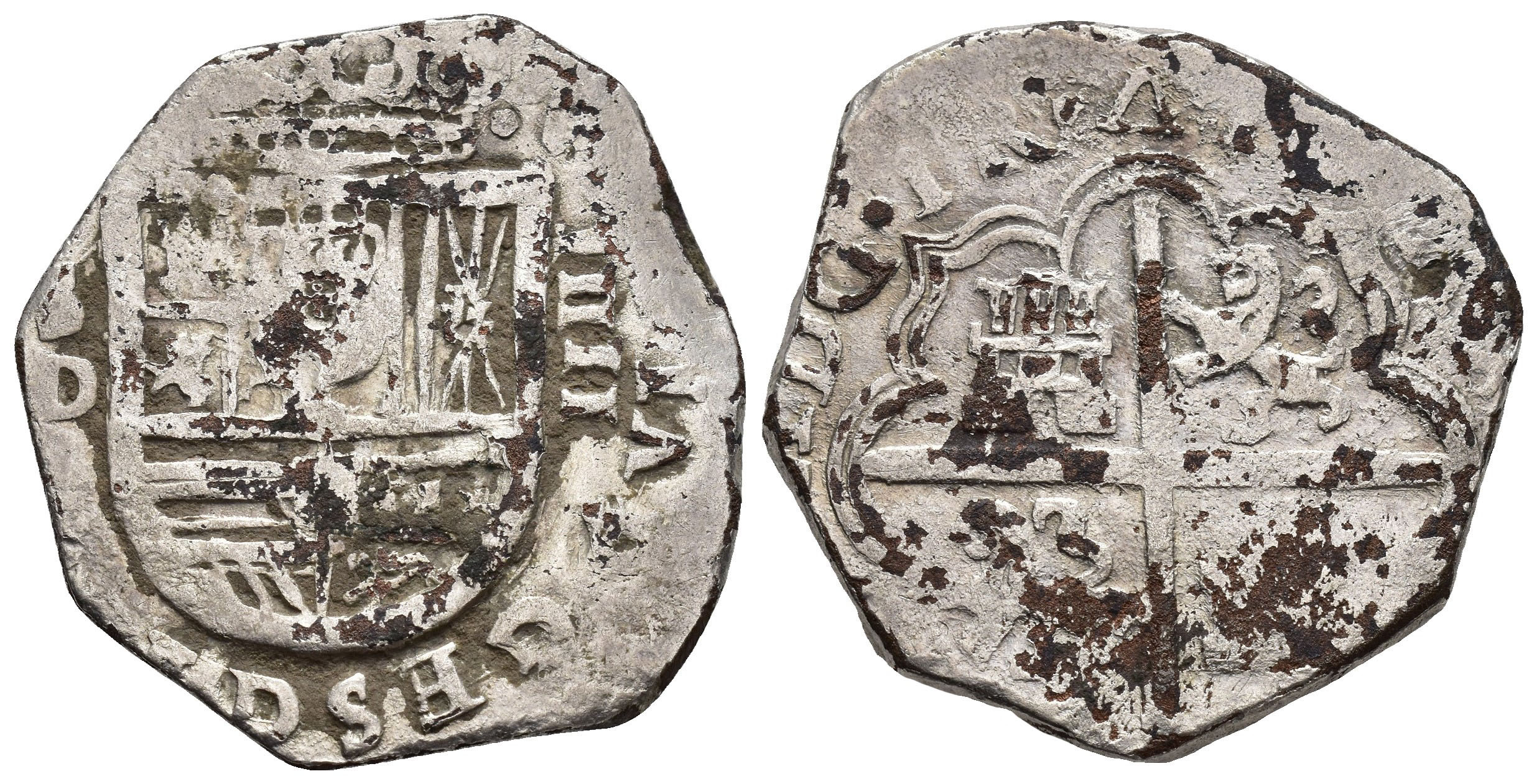 FELIPE IV. Sevilla. D. Valor IIIII. Falsa de época. 19,72 g. 32,8 mm. Cobre bañado en plata.