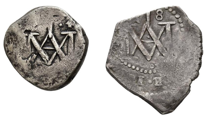 CARLOS II. Lote de 2 piezas de Sevilla, 4 y 8 reales tipo María. Amplios vanos. BC+.