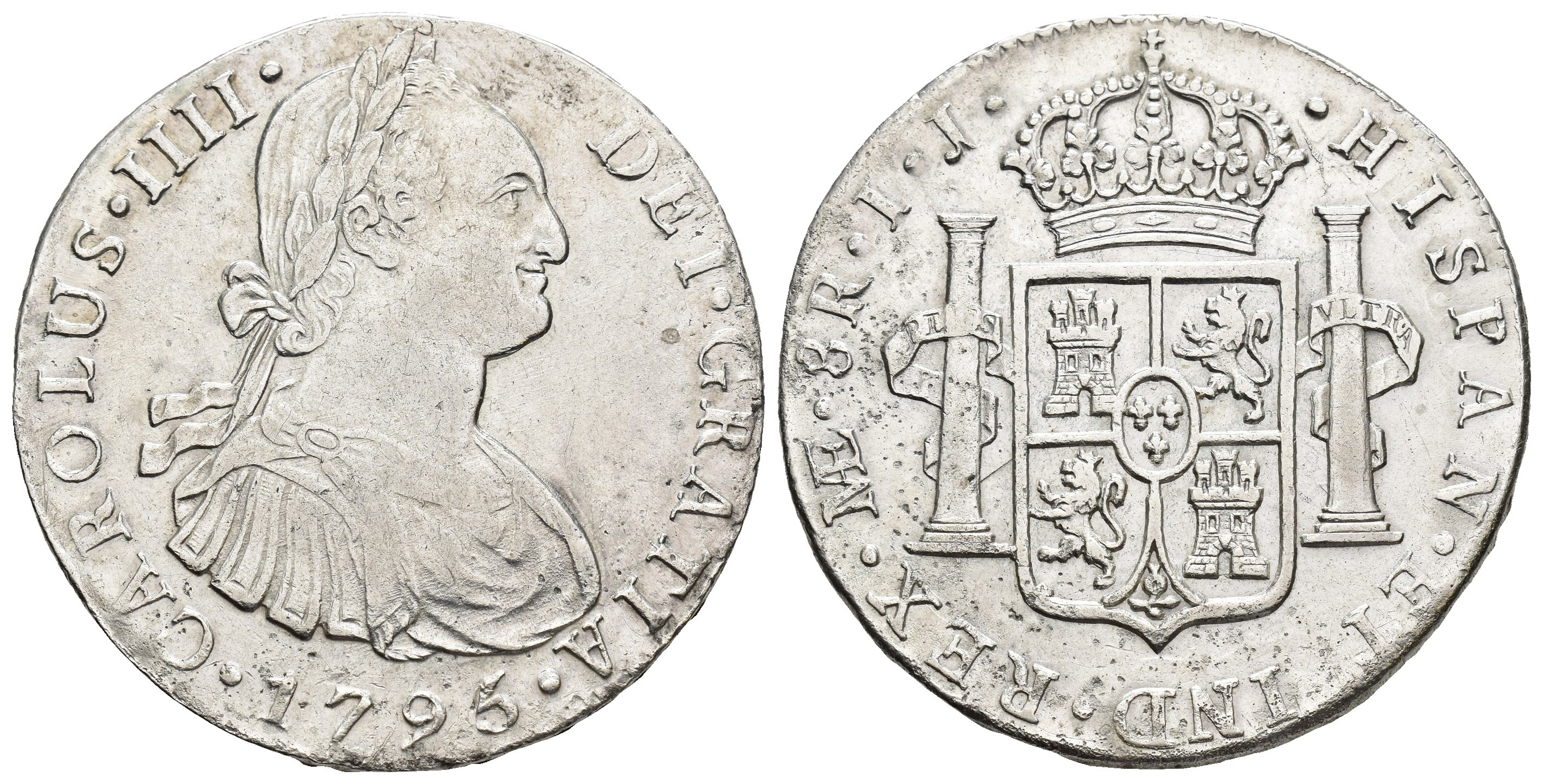 CARLOS IV. 8 reales. 1795. Lima. IJ. AR 26,83 g. 39,3 mm. VI-757; AC-912. Porosidades en rev. MBC.