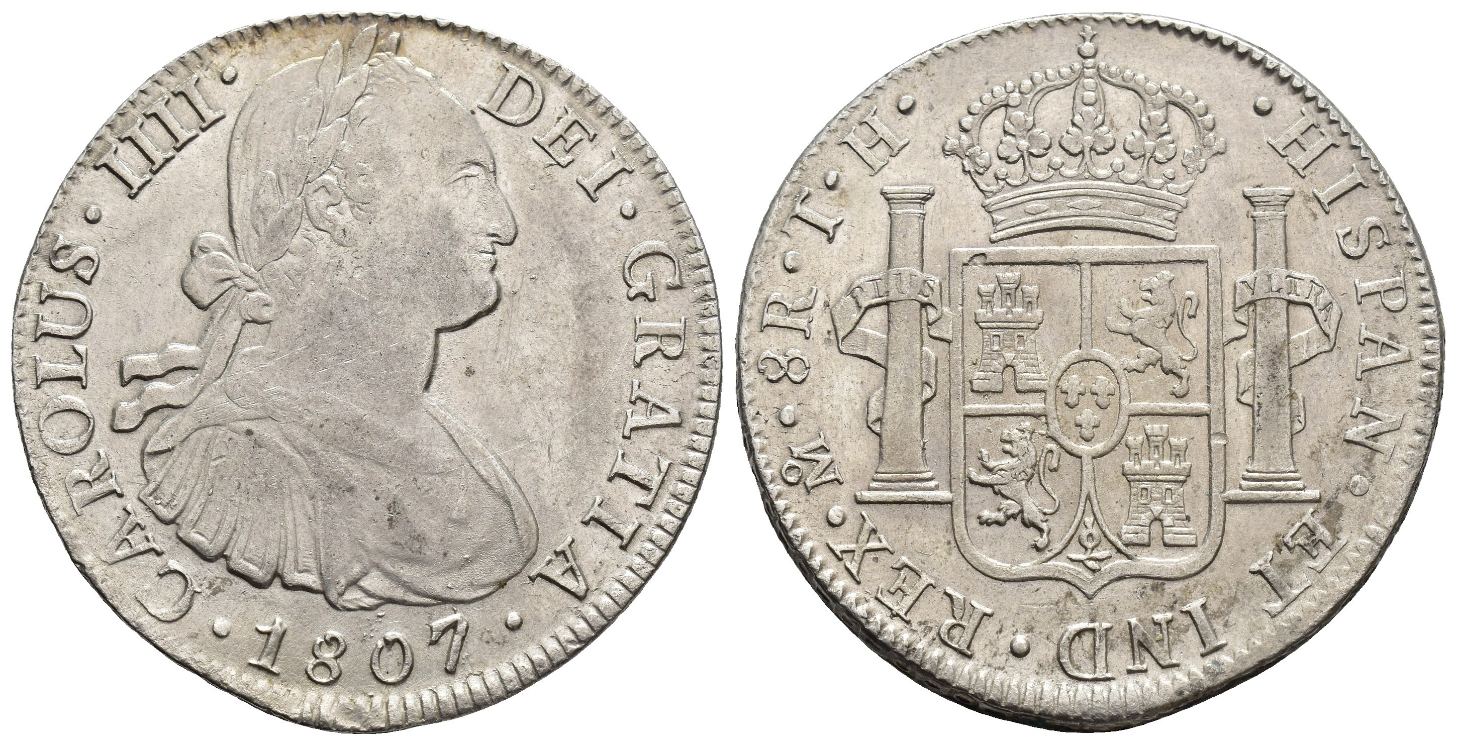 CARLOS IV. 8 reales. 1807. México. TH. AR 26,8 g. 40 mm. VI-805; AC-986. R.B.O. MBC/MBC+.