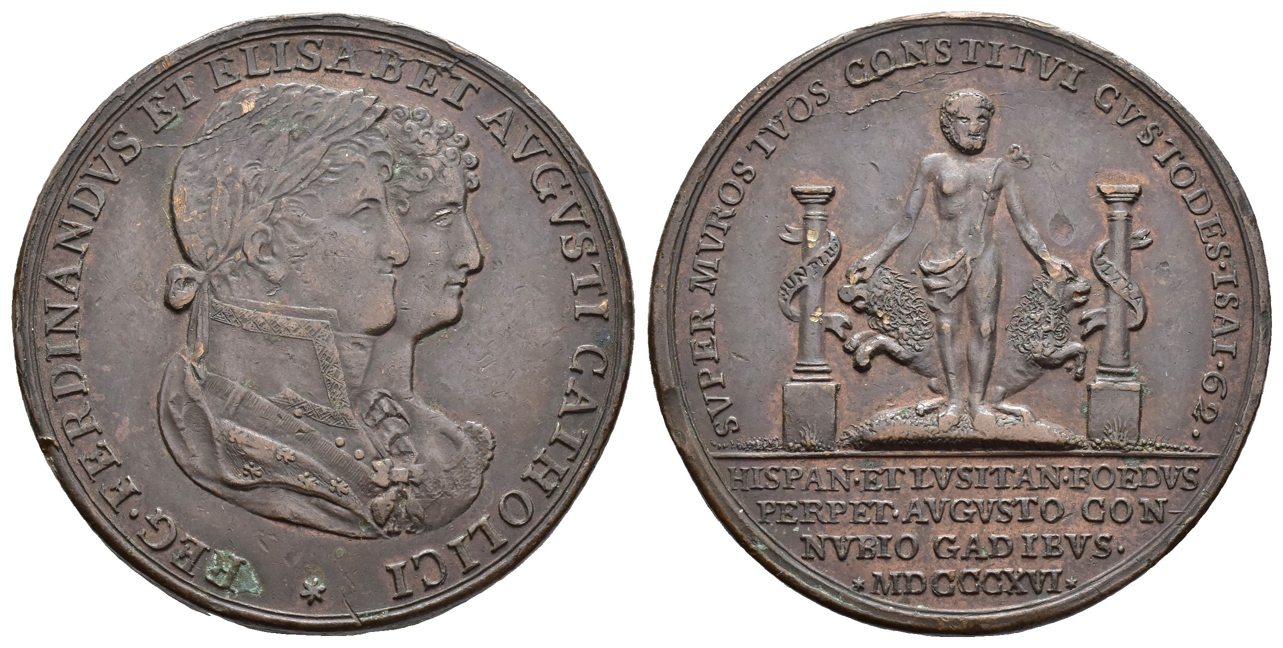 FERNANDO VII. Medalla. 1816. Unión Augusta. Cádiz. AE 19,48 g. 34 mm. Vives-324. Golpecitos. MBC+.