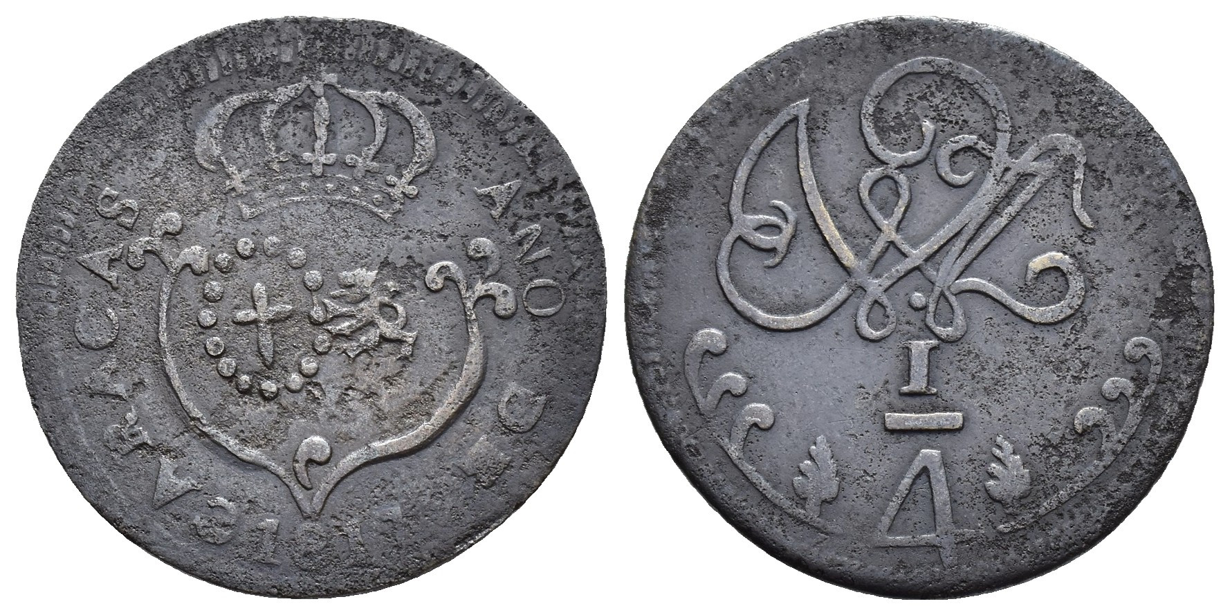FERNANDO VII. 1/4 real. 1817. Caracas. CU 2,78 g. 24,06 mm. VI-7; AC-66. Erosiones. MBC.