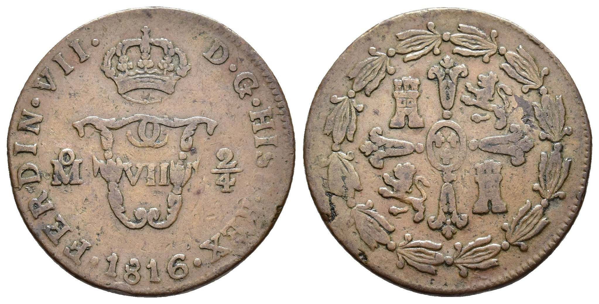 FERNANDO VII. 2/4 real. 1816. México. CU 7,16 g. 27,88 mm. VI-78; AC-112. Hojita en rev. MBC/MBC-.